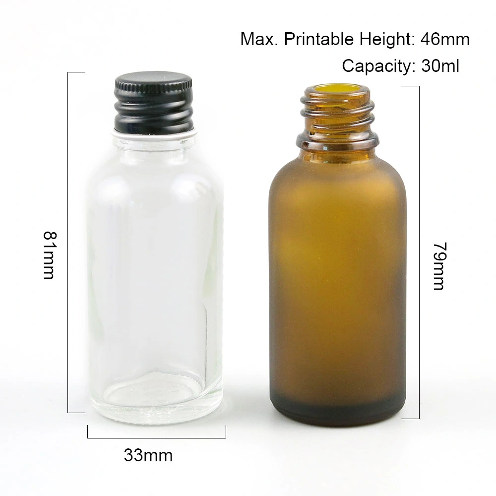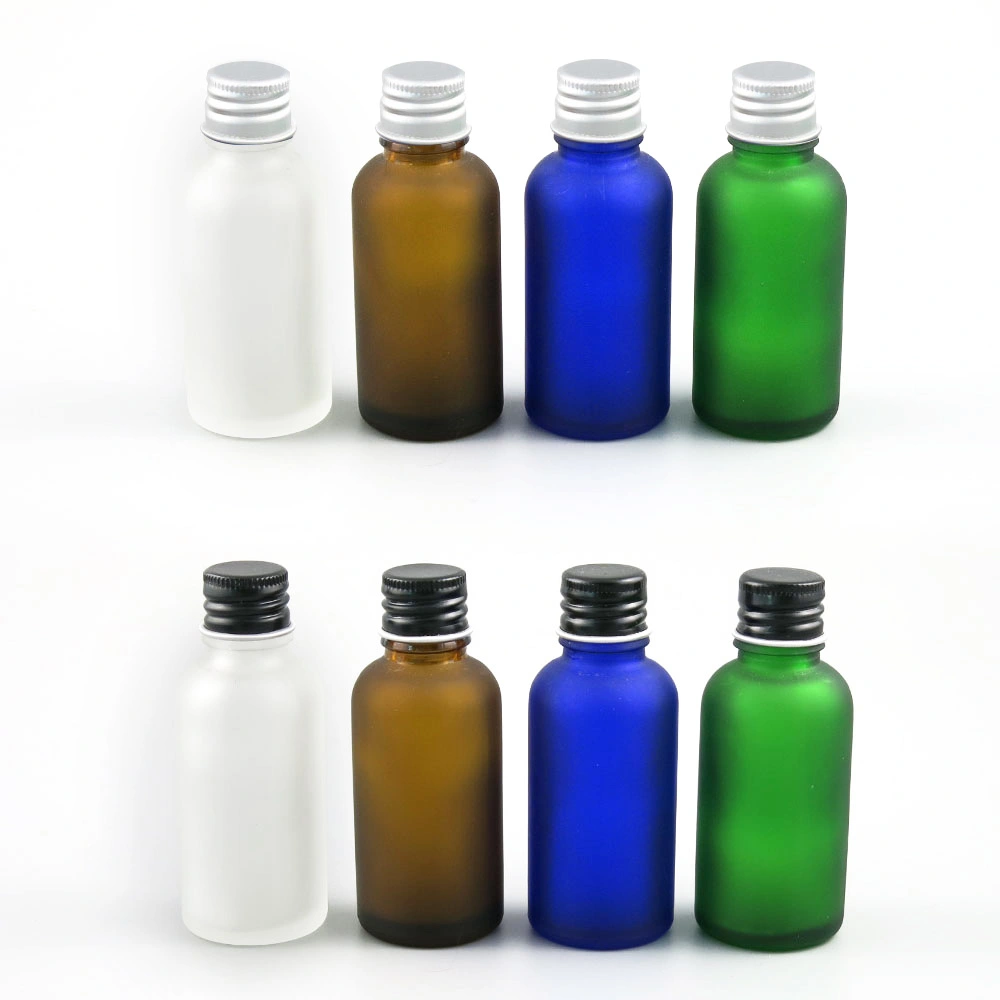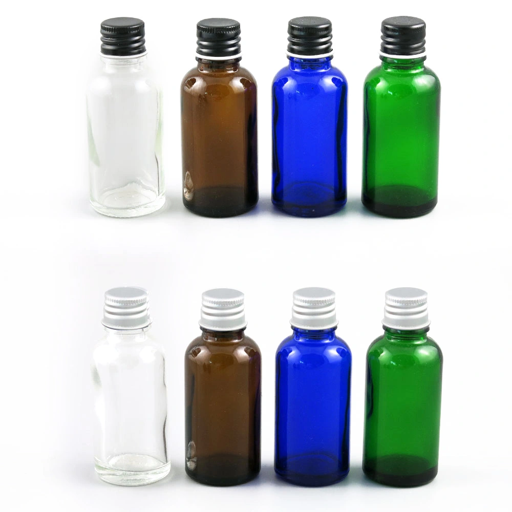 Empty Cosmetic Screw Recycled Glass Essential Oil Bottles Aluminum Cap Wholesale Serum Custom 30mL Amber Green Clear Blue