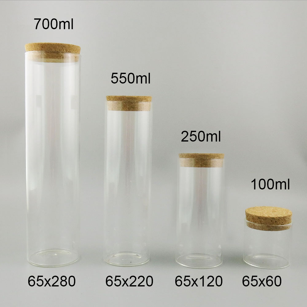Empty Glass Tube With Cork Corked Glass Display Containeers 100ML 250ML 550ML700ML