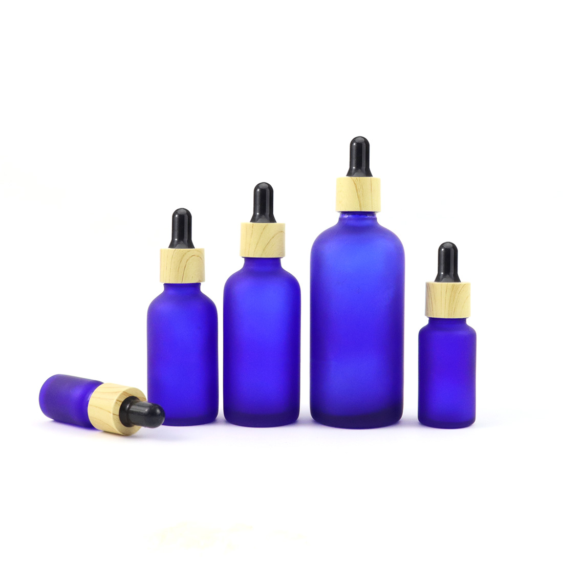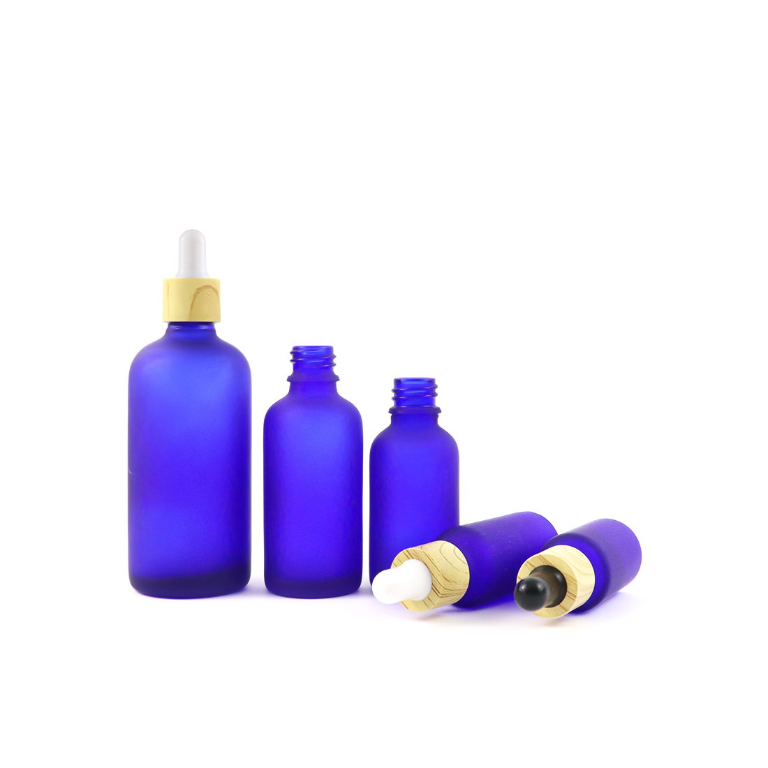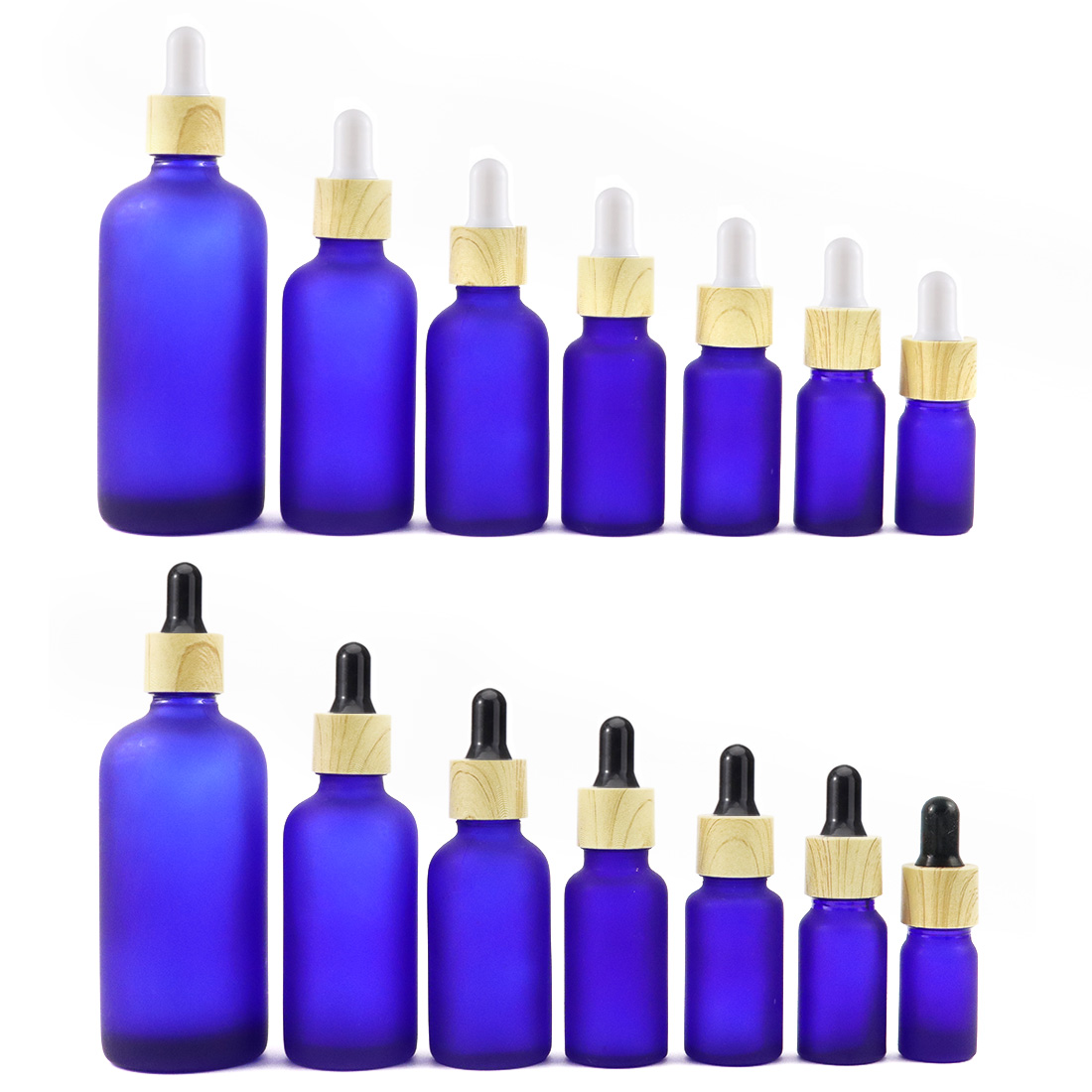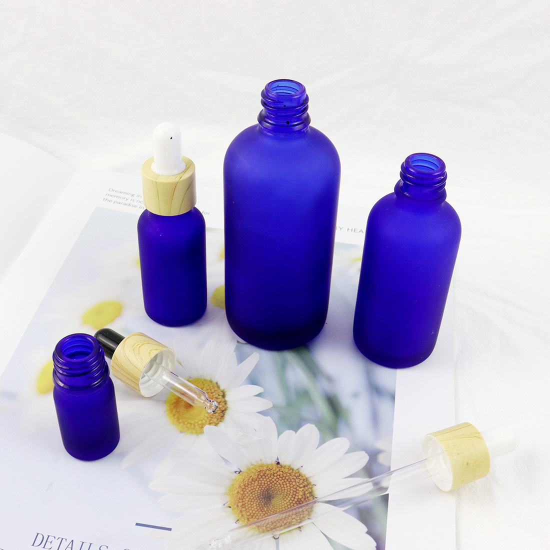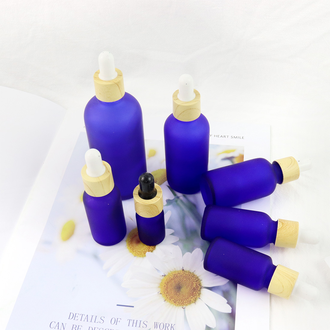 Essence Frosted Frosted Glass Dropper Bottle Cobalt Blue Perfume Sample Vials Multi Capacity Essential Oils Bottle with Bamboo Cap