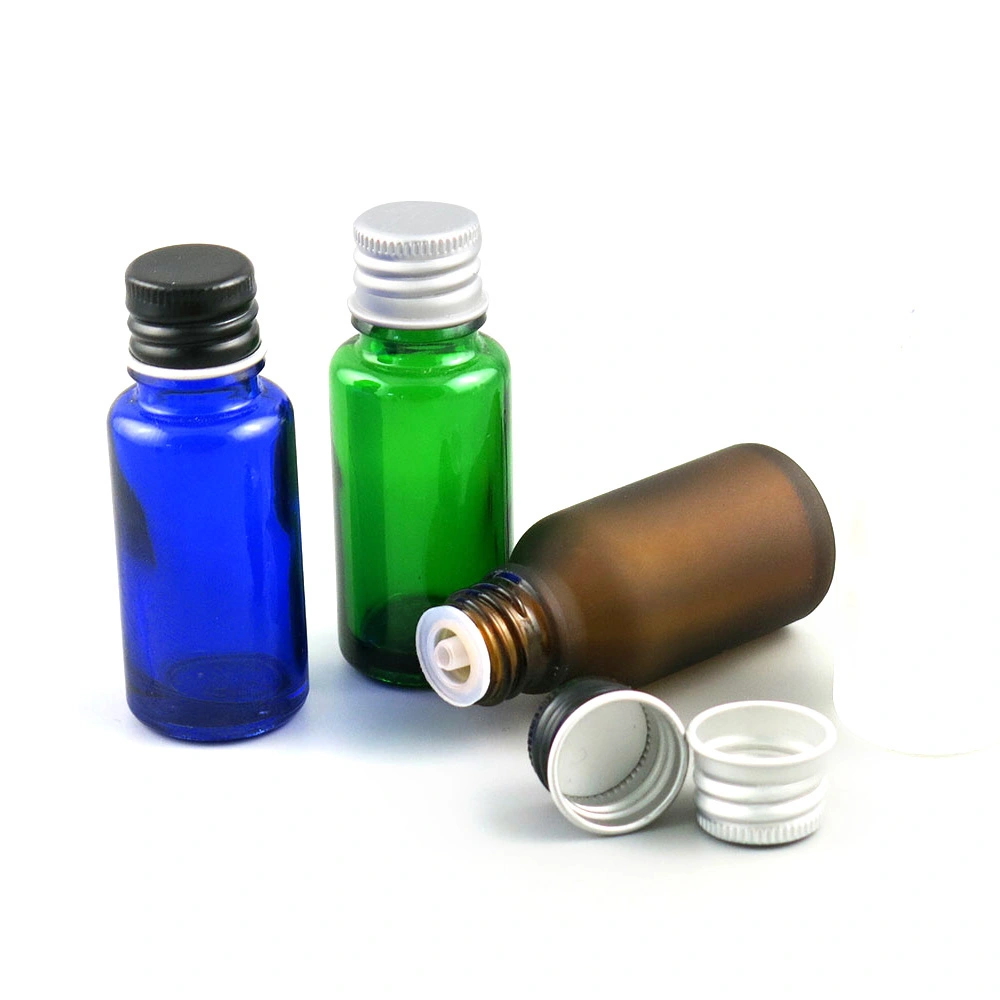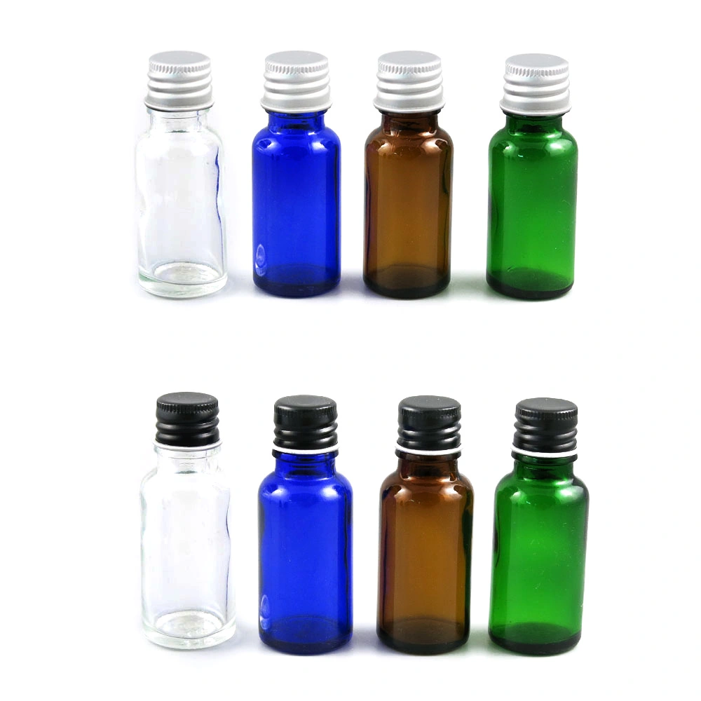 Essential Oil Packaging 20ml Clear Green Blue Amber Glass Screw Bottle With Childproof Cap