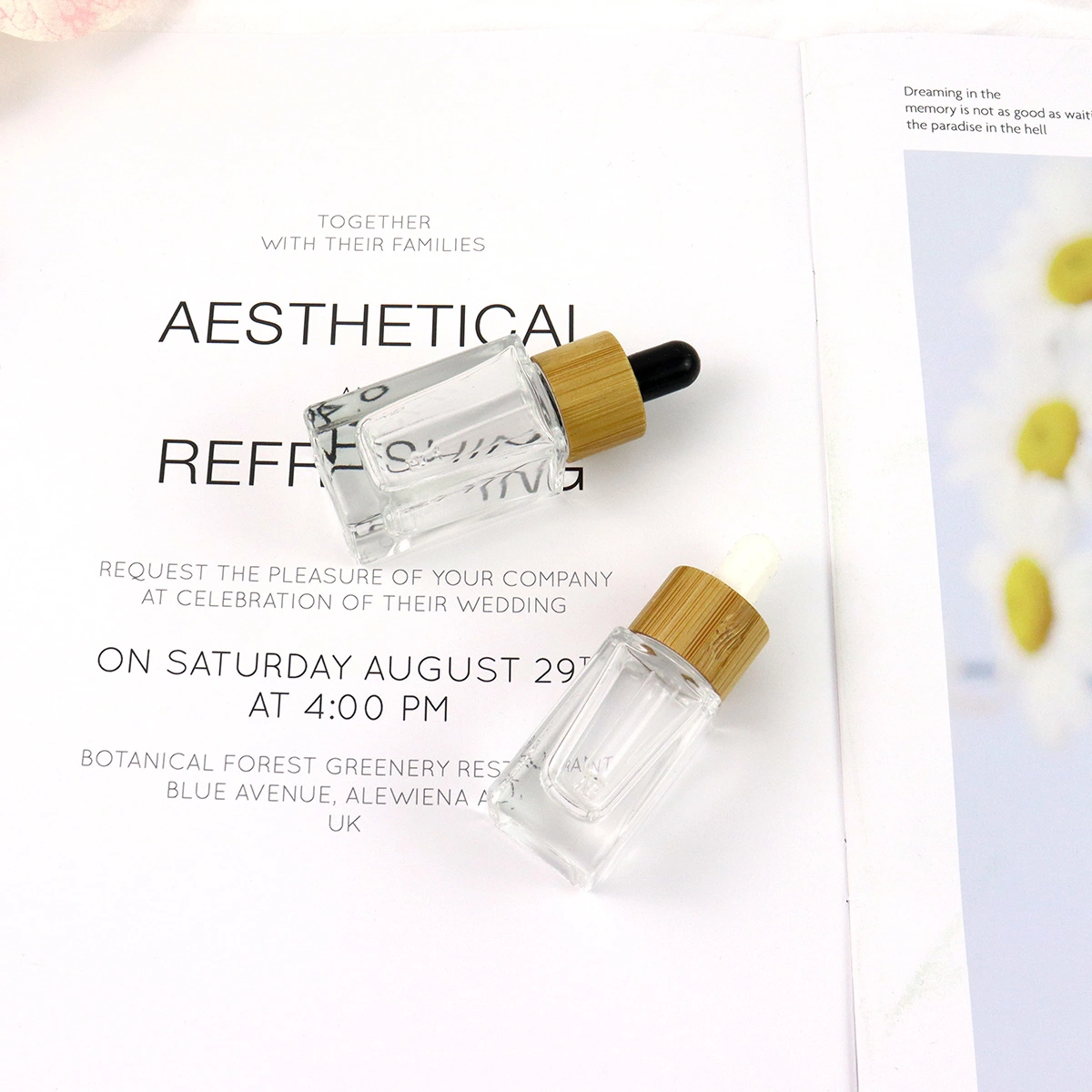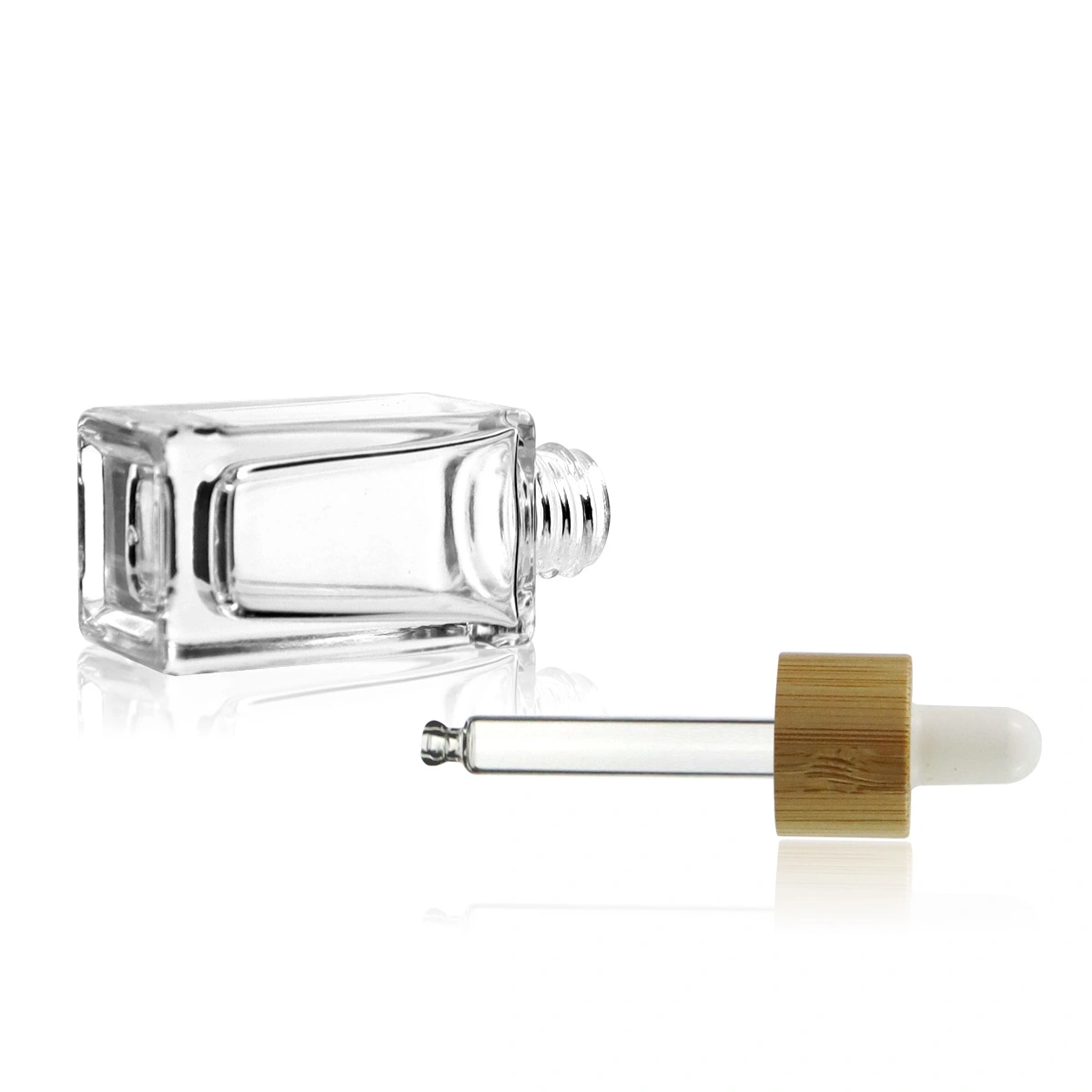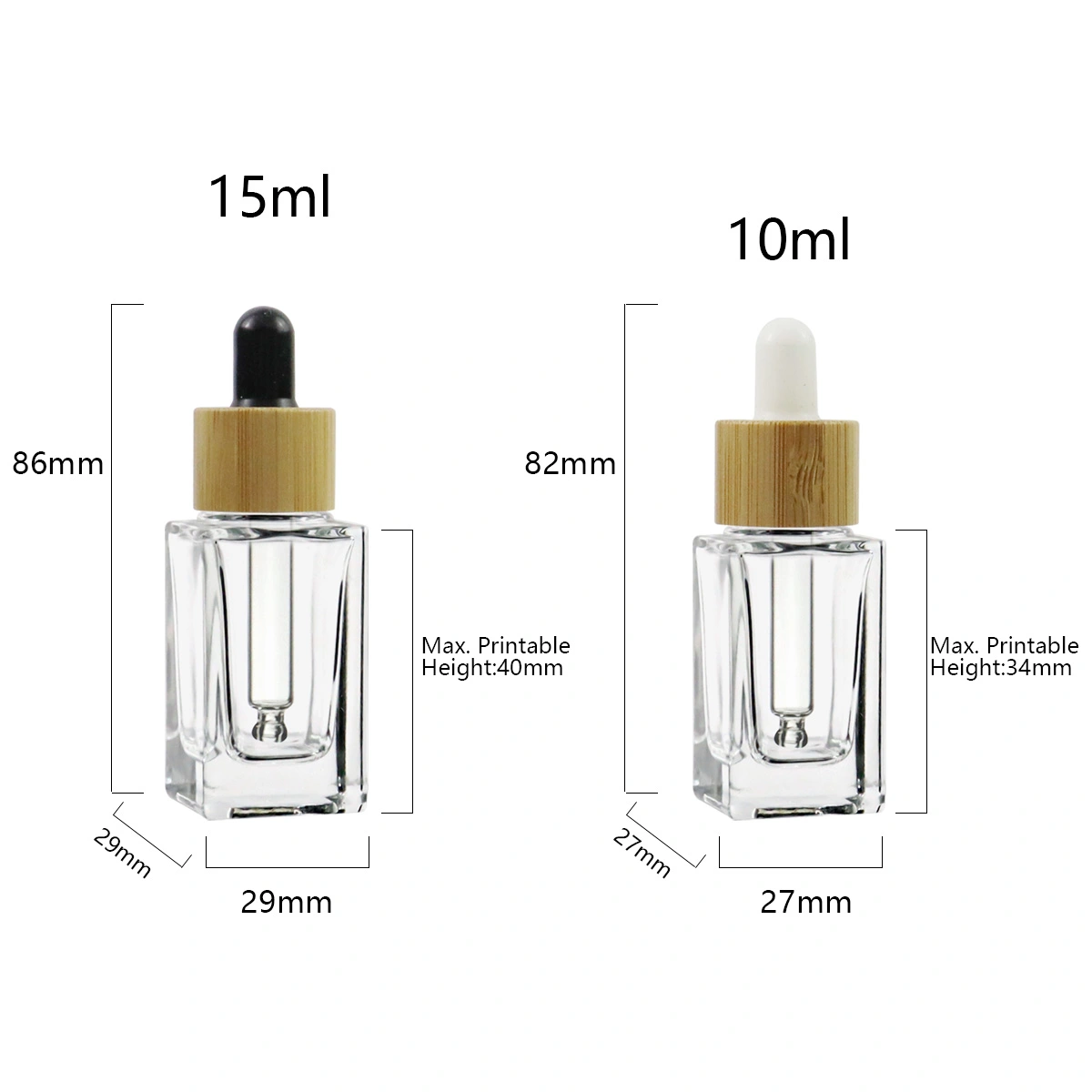 Factory Cheap Small 10ml 15ml Custom Glass Square Clear Bottles With Bamboo Dropper