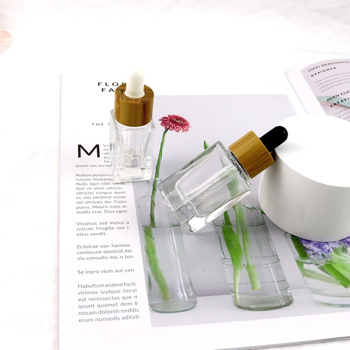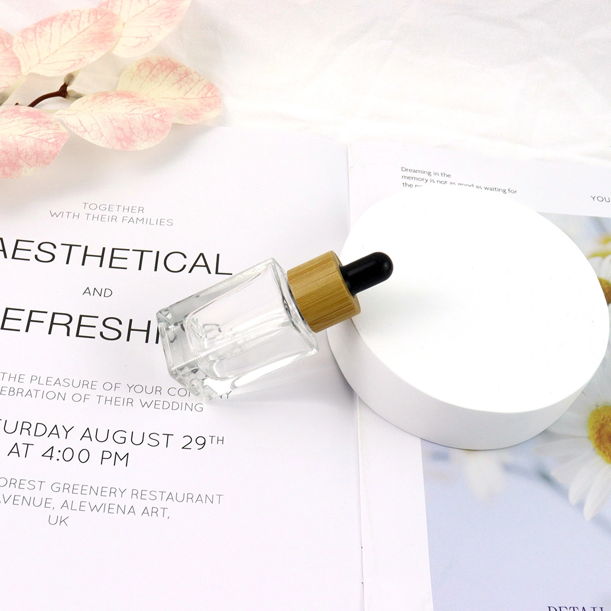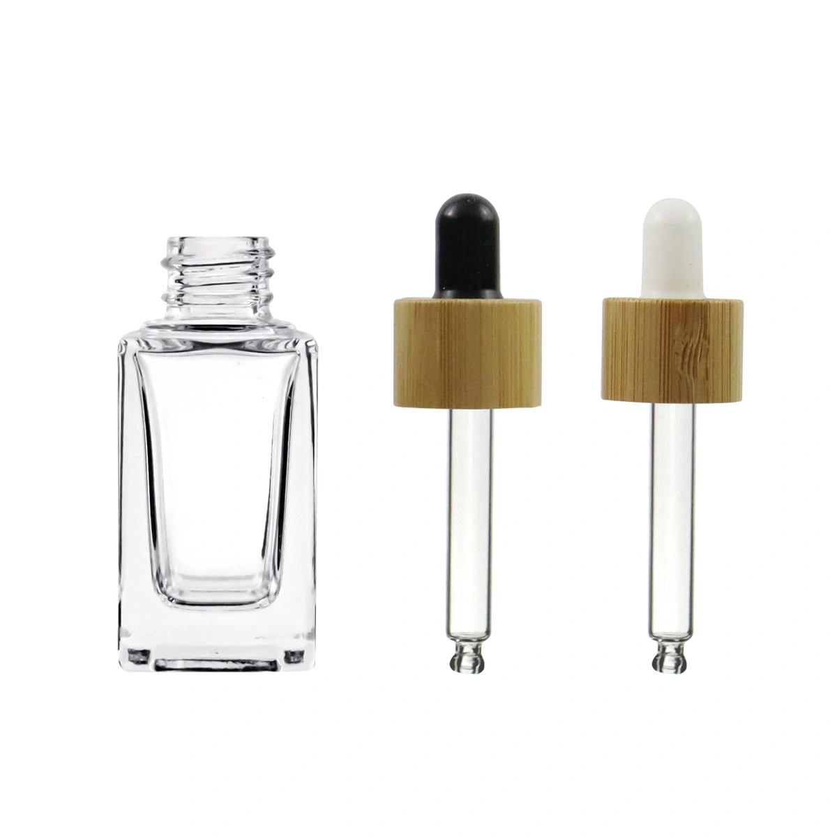 Factory Cheap Small 10ml 15ml Custom Glass Square Clear Bottles With Bamboo Dropper