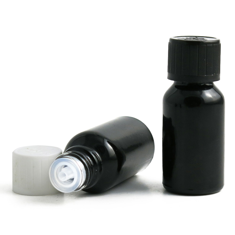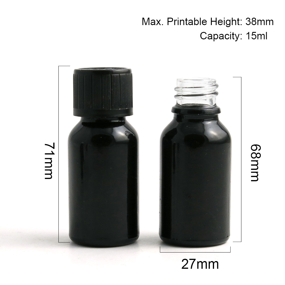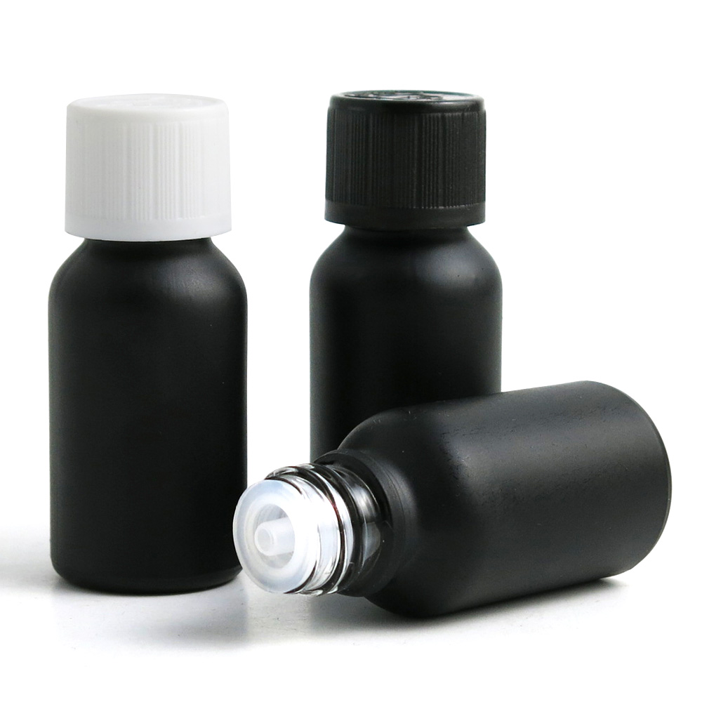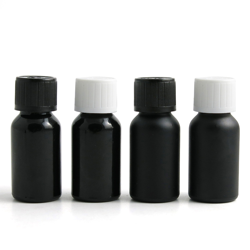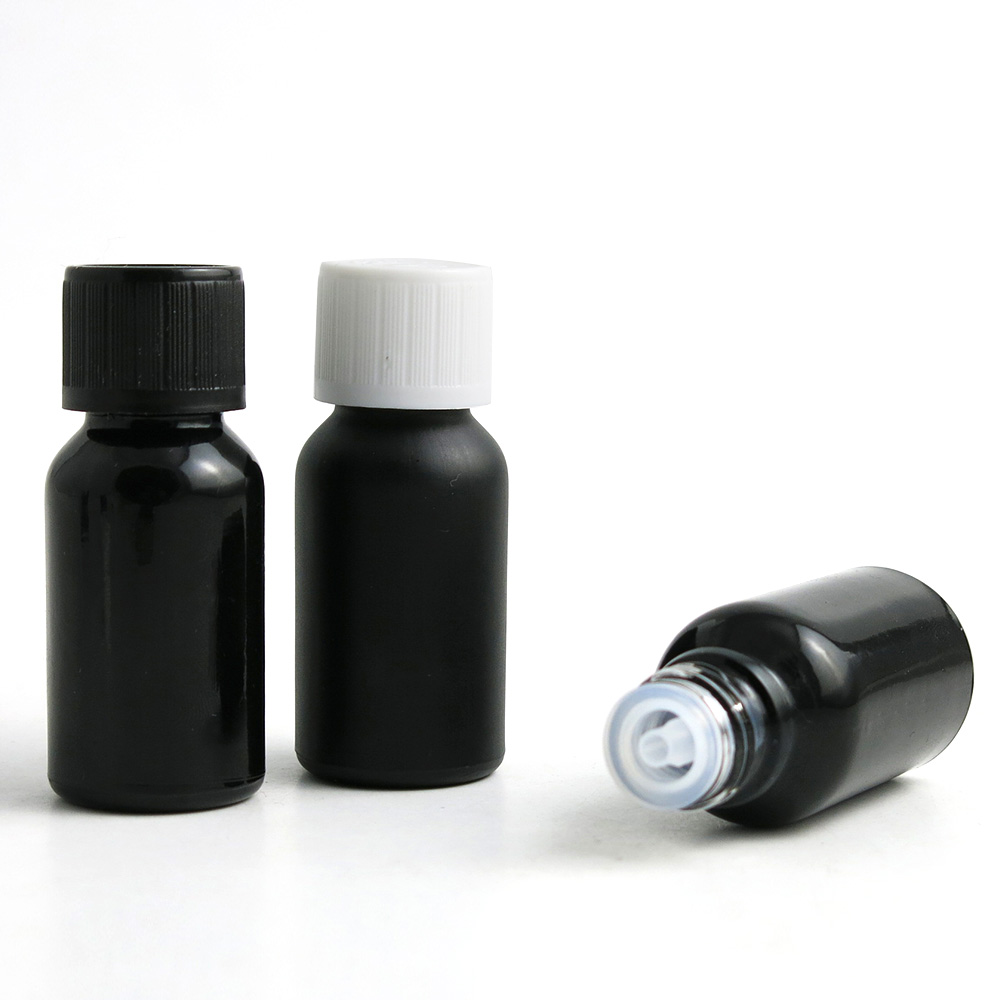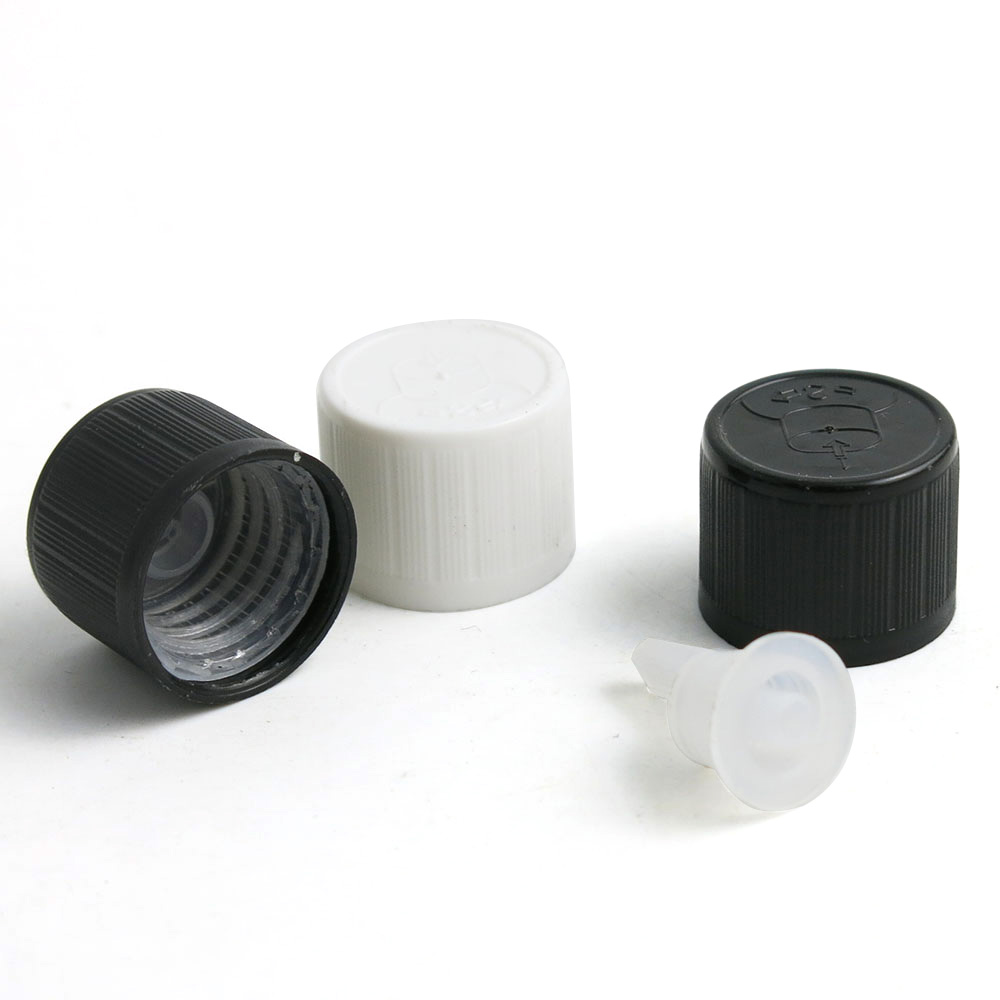 Factory Direct Sales Essential Oil Glass Bottle Black Childproof Plastic Screw Cap Hot sale Products Black White Cap