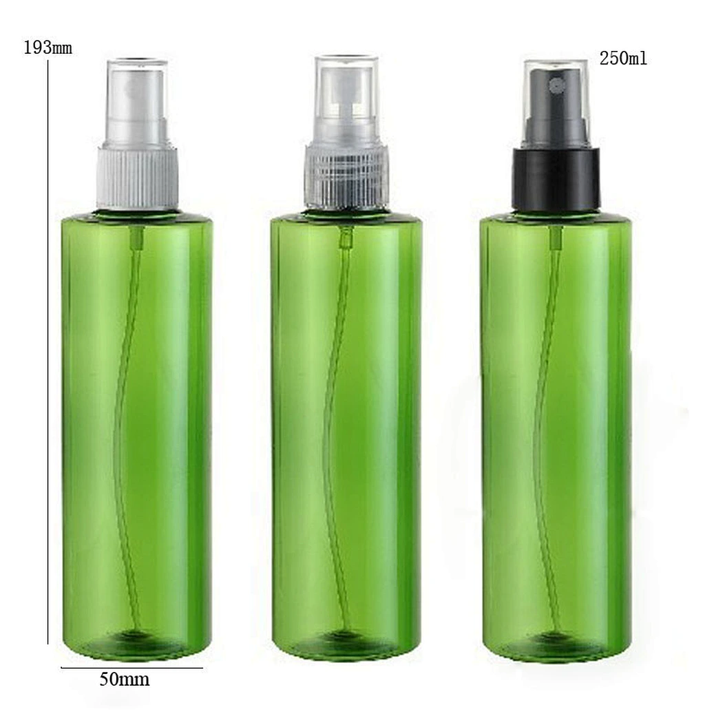 Green 250ml Empty PET Bottle Essential oil Lotion Bottless Cosmetic Container with Palstic Sprayer Pump & Caps