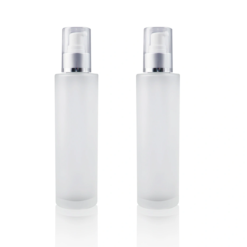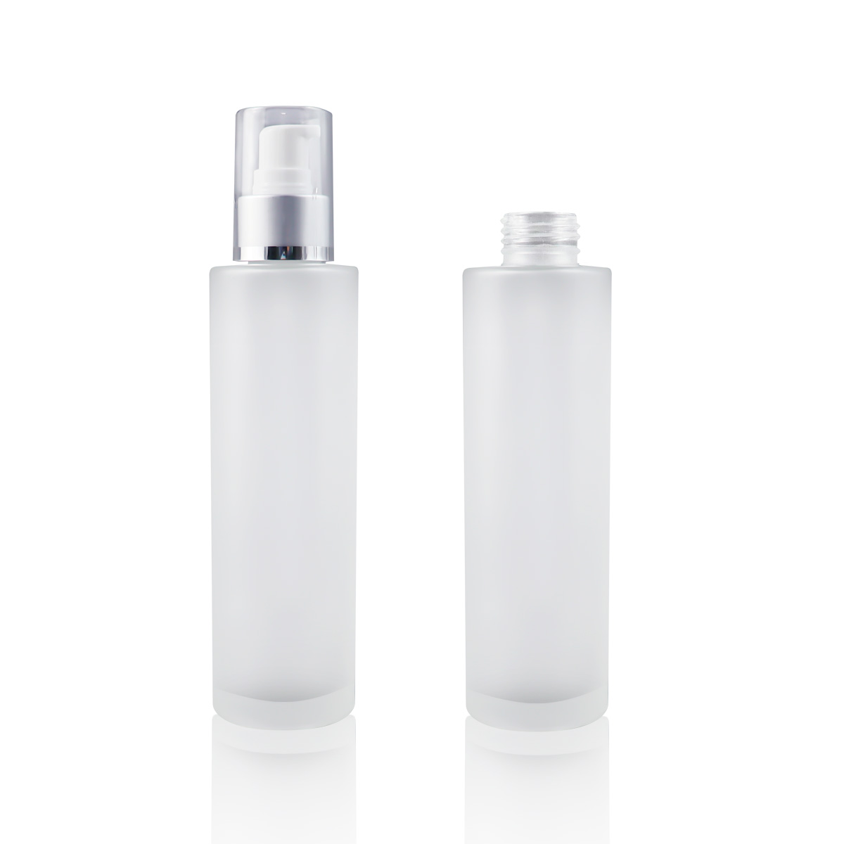 High Quality Skincare Packaging 150ml Mlessential Oil Bottle Cylinder Frosted Glass Cream Bottle With PET Pump