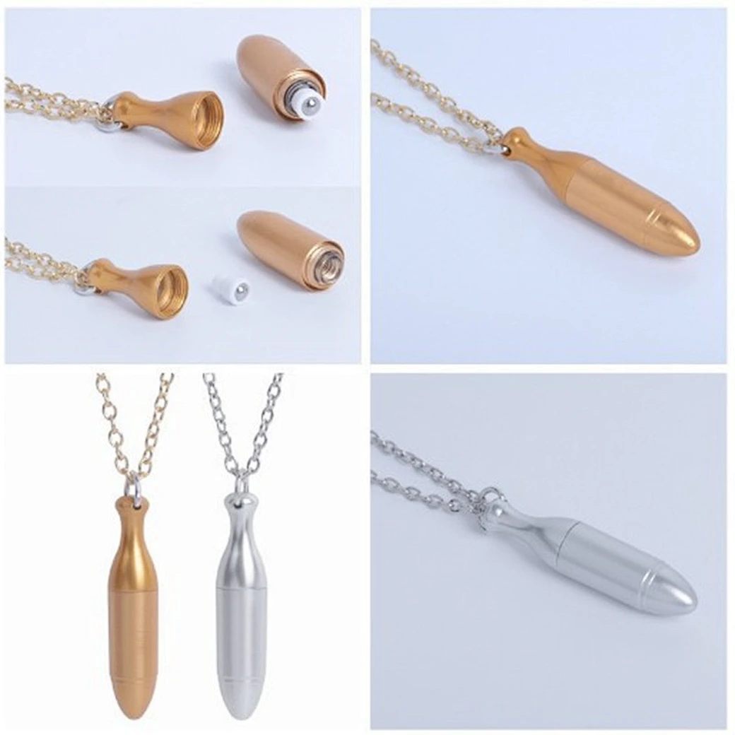 Hot sale Metal necklace with 10ml Roll bottle Perfume Essential Oil Cosmetic Container