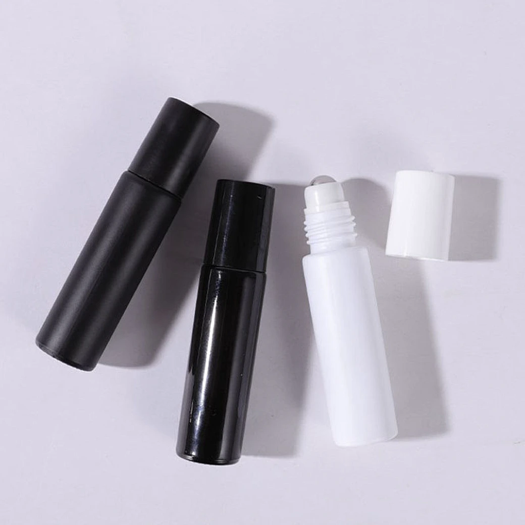 Low Moq 10ml Black White Roller Bottle Essential Oil Perfume Empty Bottle With Plastic Cap And Steel Ball with CE “WeTrust”
