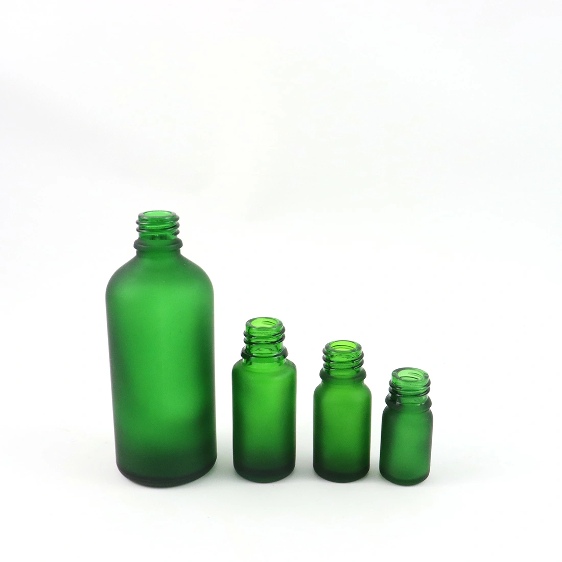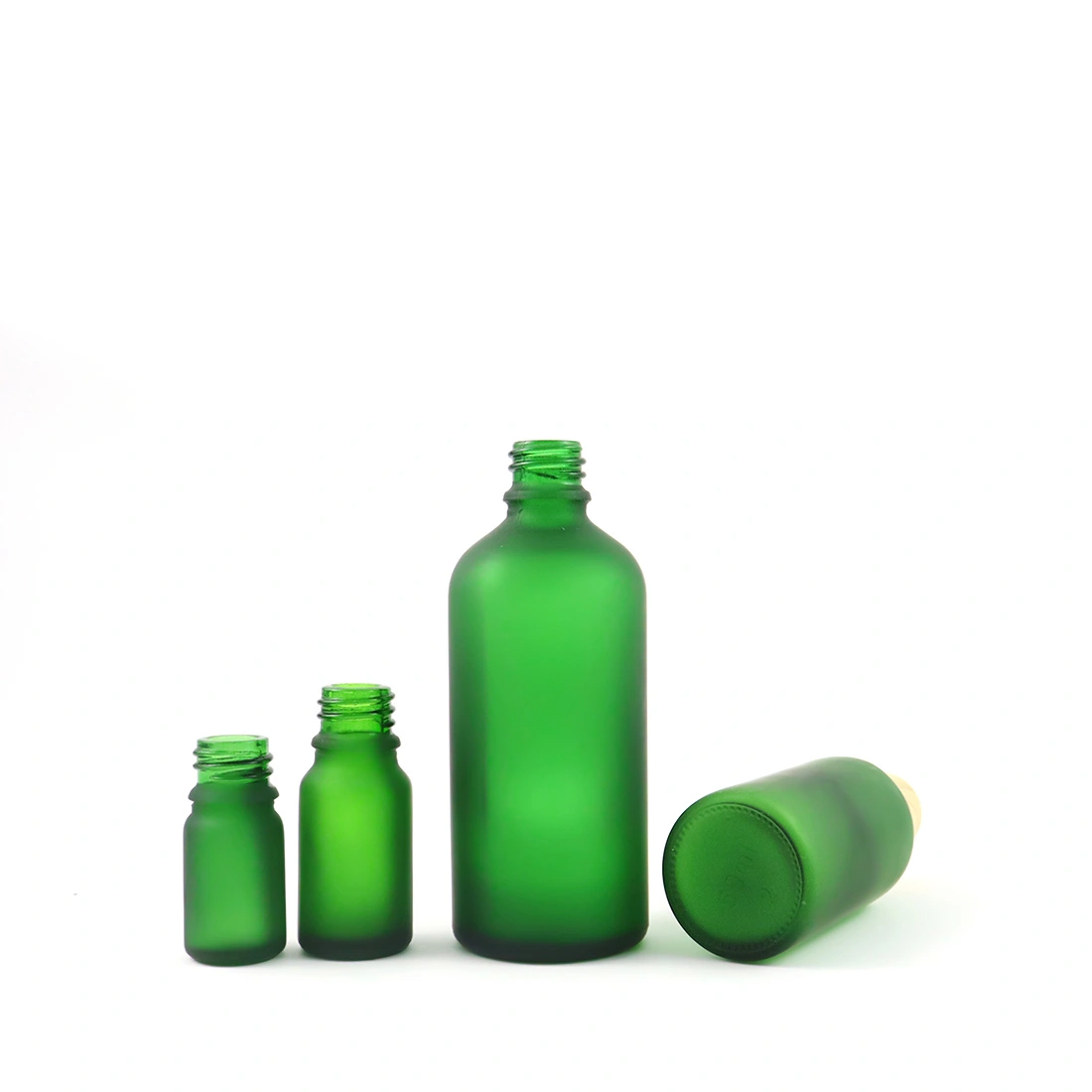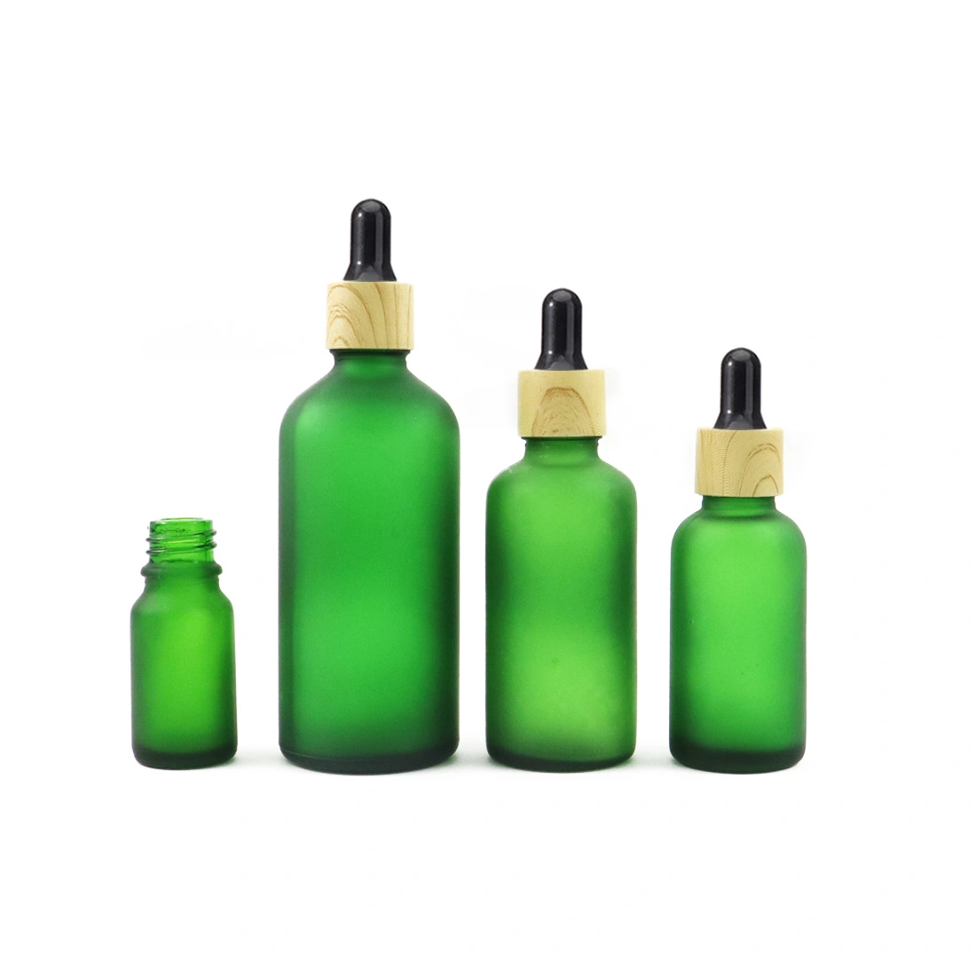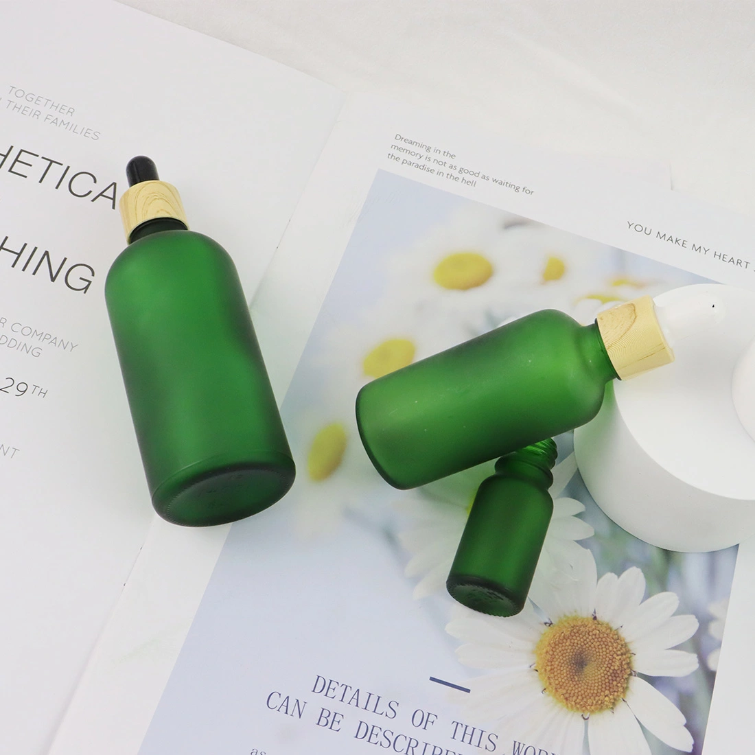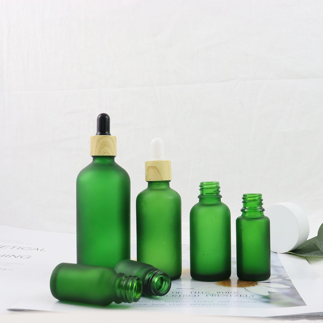 Luxury Boston Round Glass Essential Oil Dropper Bottle Green Frosted Glass Dropper Bottle With Bamboo Cap