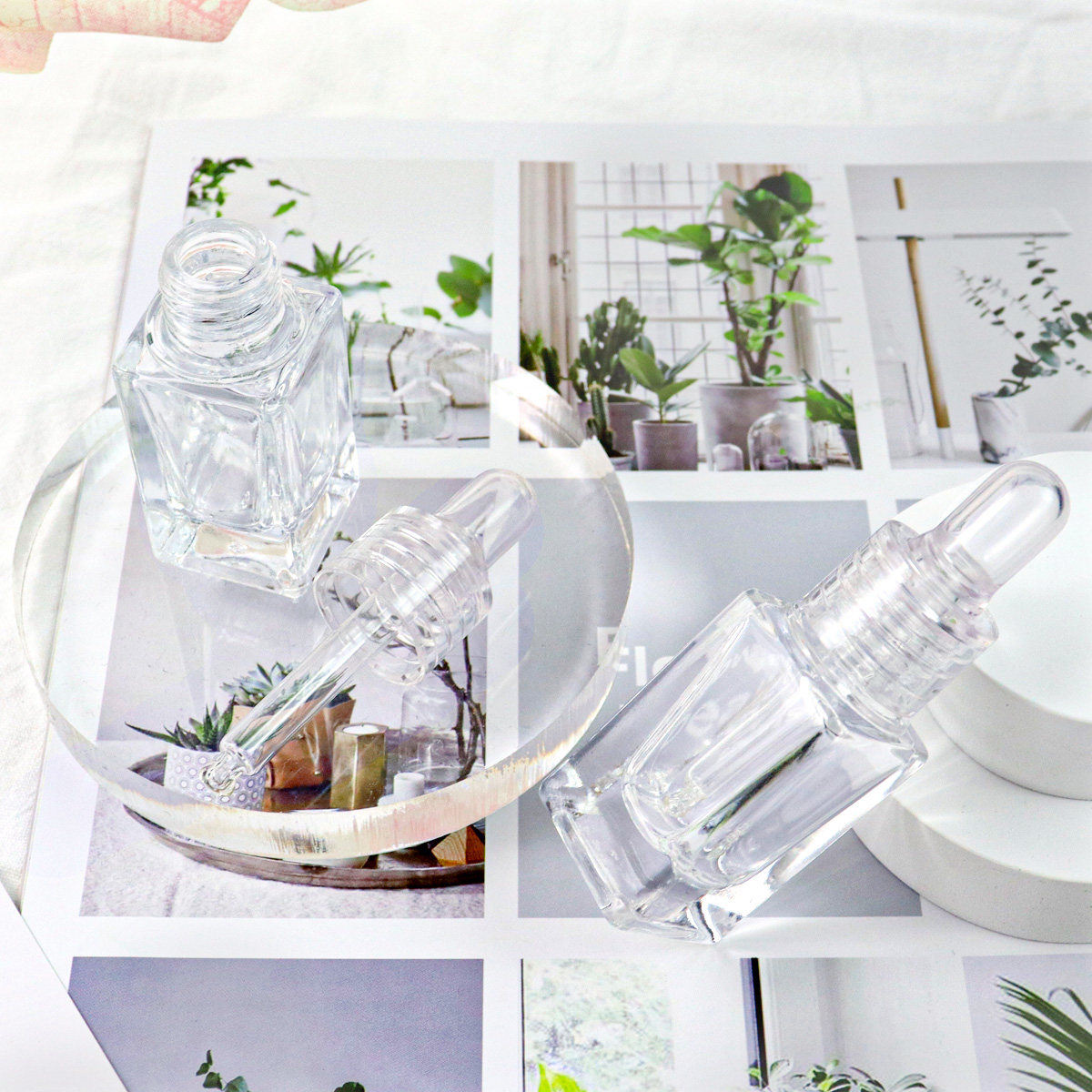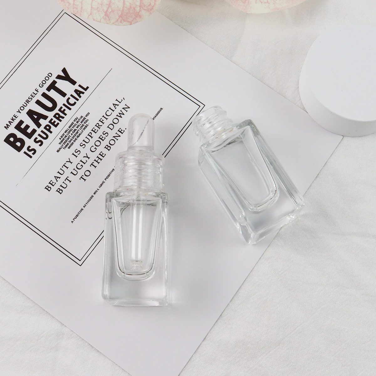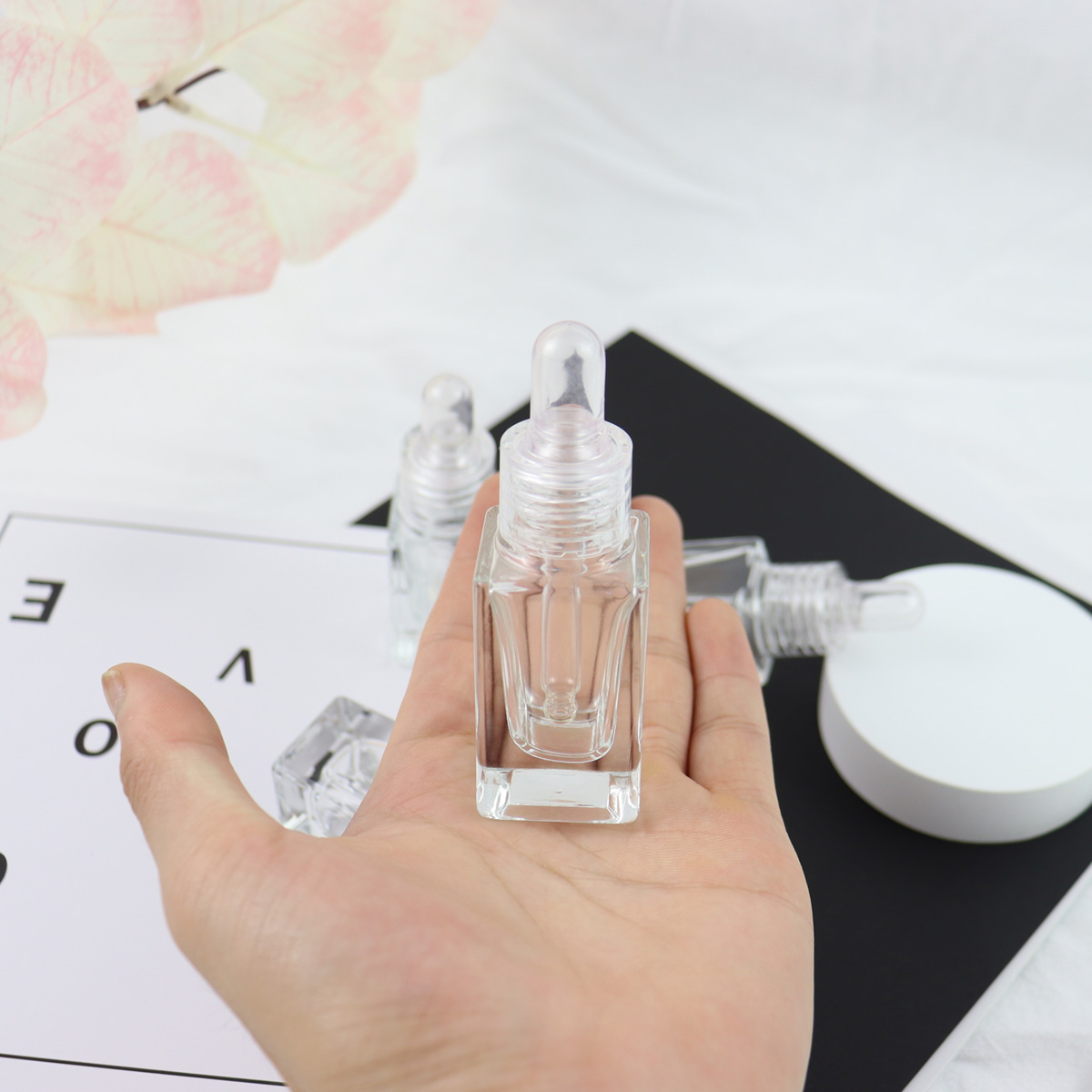 Luxury Oil Square Glass Dropper Bottle 10ml 15ml Clear Thick Wholesale glass dropper bottle With Dropper