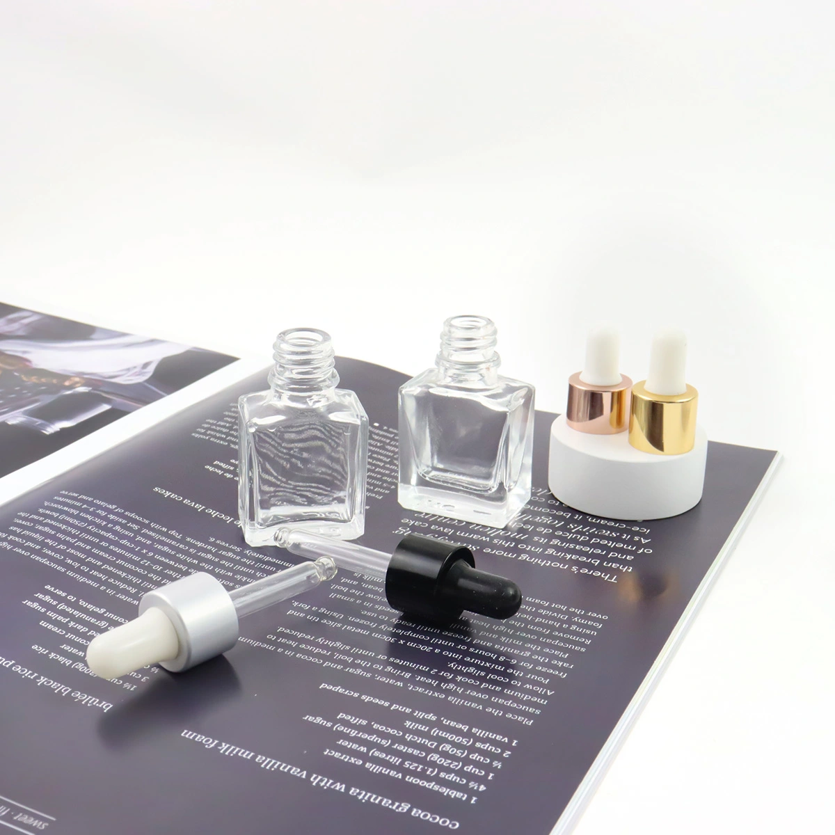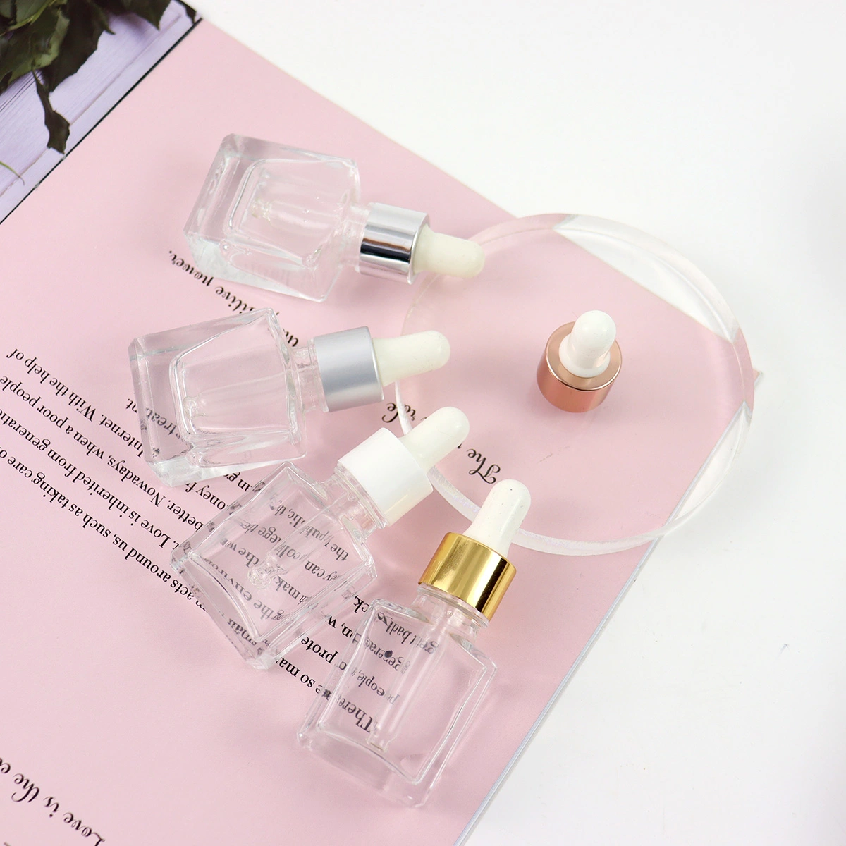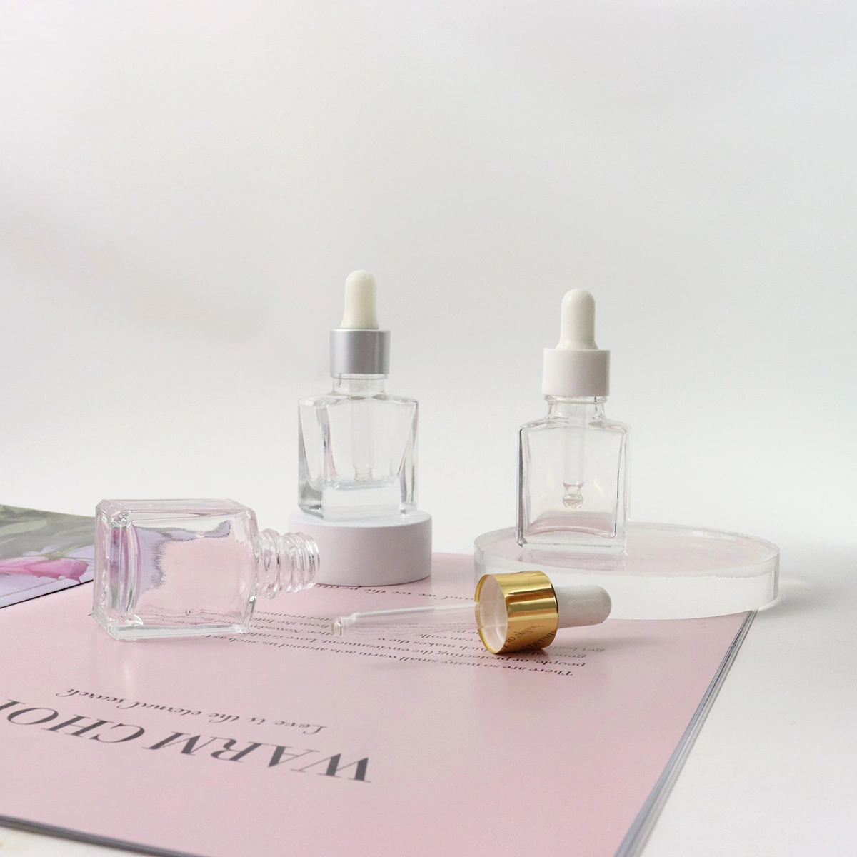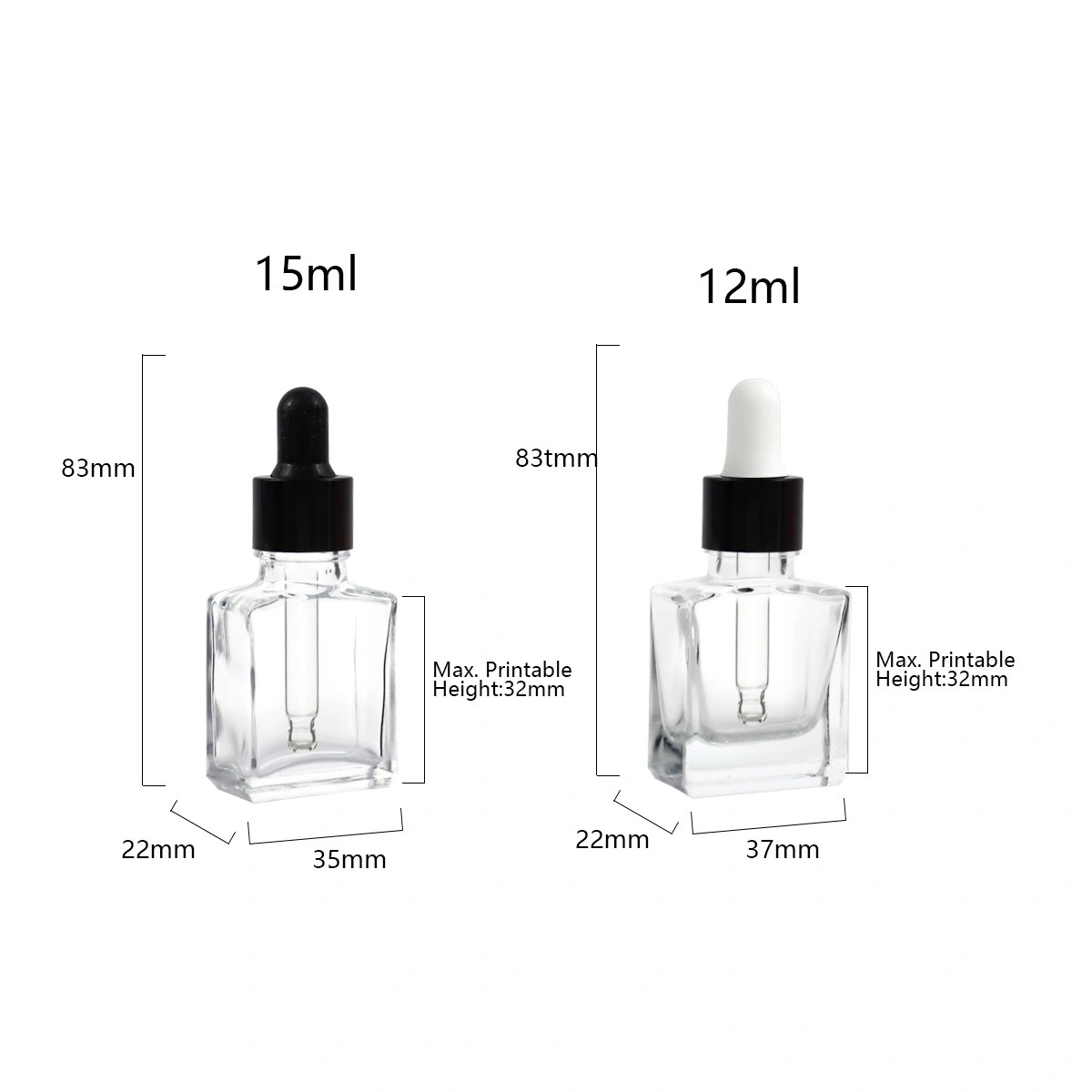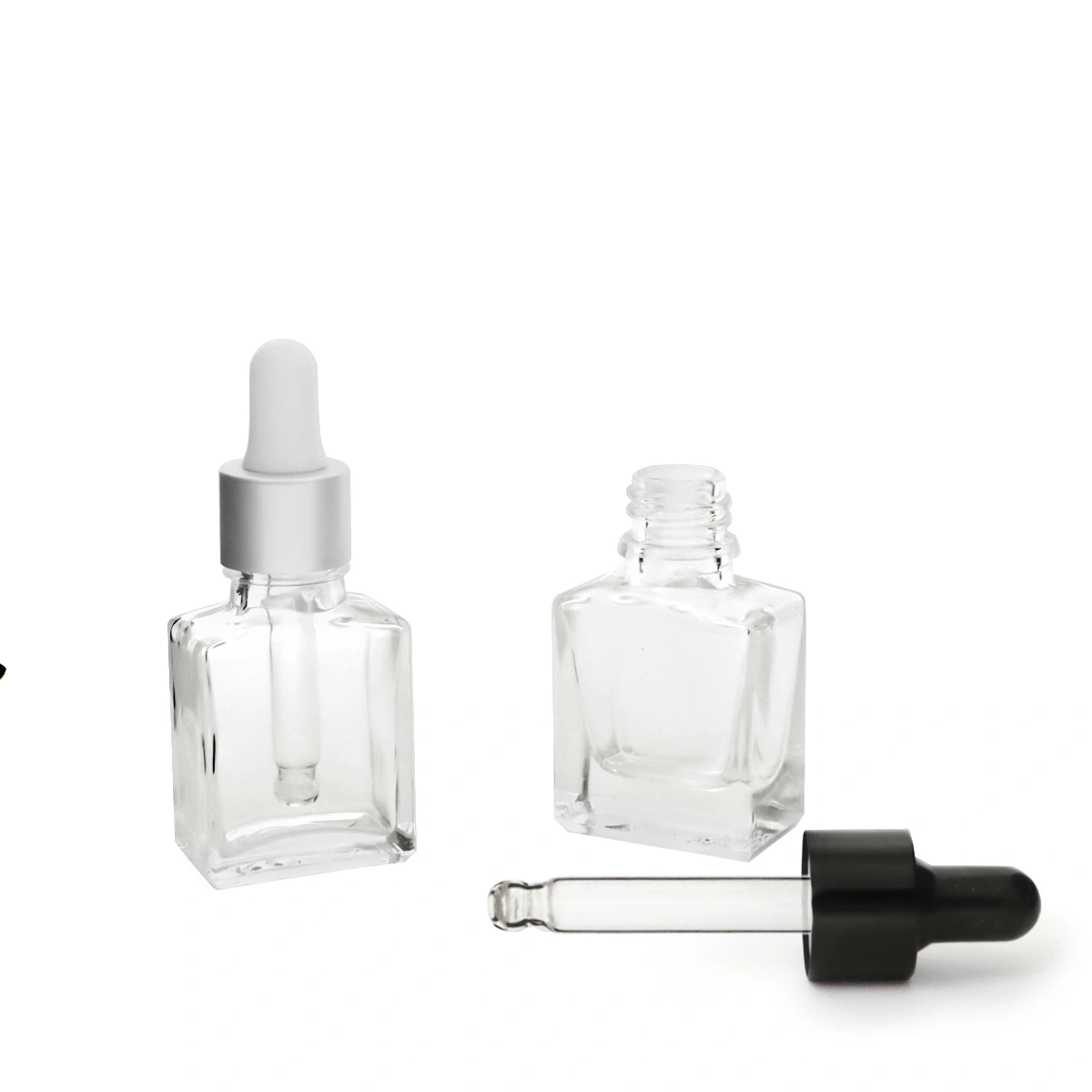 Luxury Oil Square Glass Dropper Bottle 15ml Clear Thick Color Serum Bottle Wholesale glass dropper bottle With Dropper