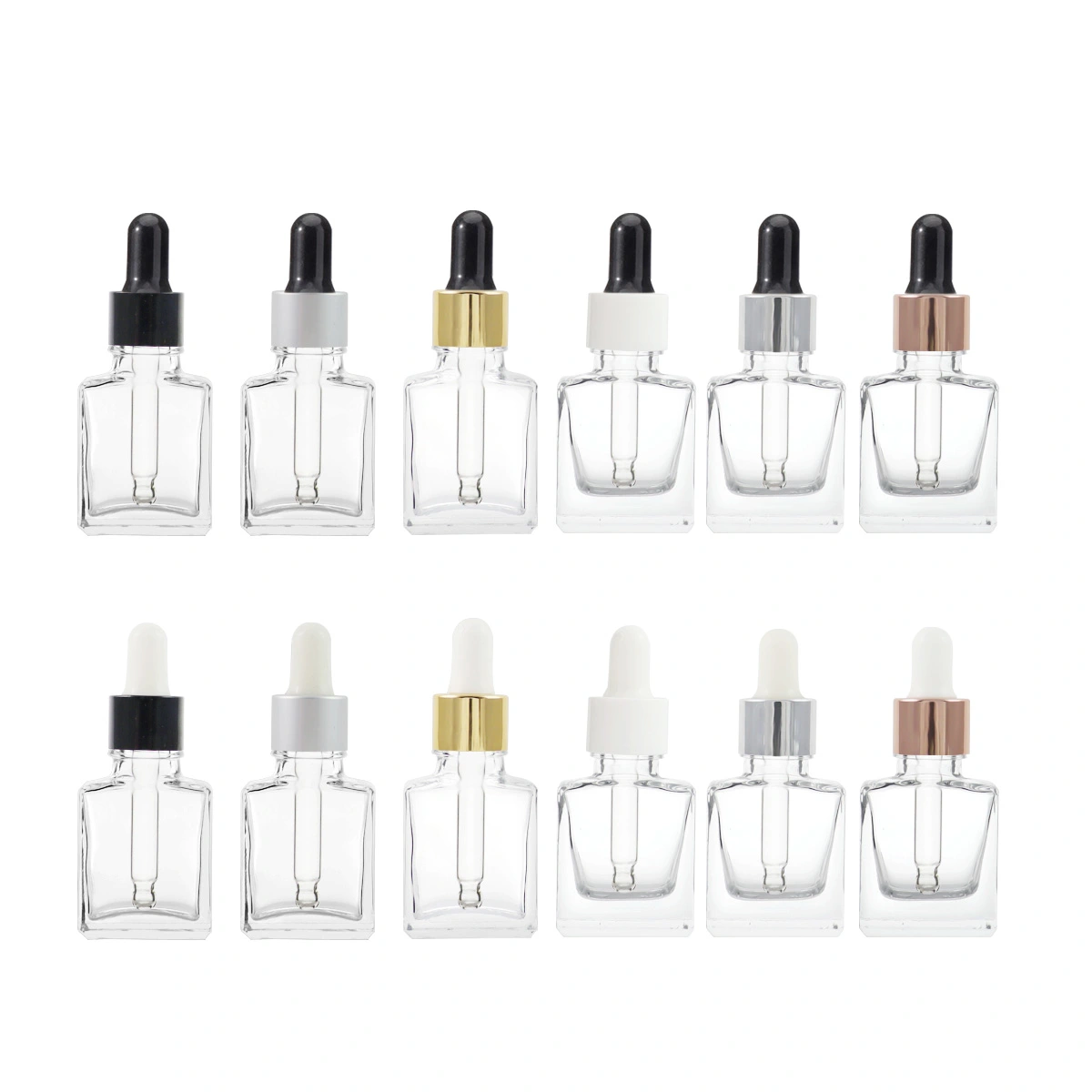 Luxury Oil Square Glass Dropper Bottle 15ml Clear Thick Color Serum Bottle Wholesale glass dropper bottle With Dropper