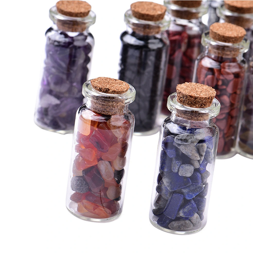 Natural White Pink Yellow Amethyst Crushed Stone Landscape Wishing Drift Cork Bottle