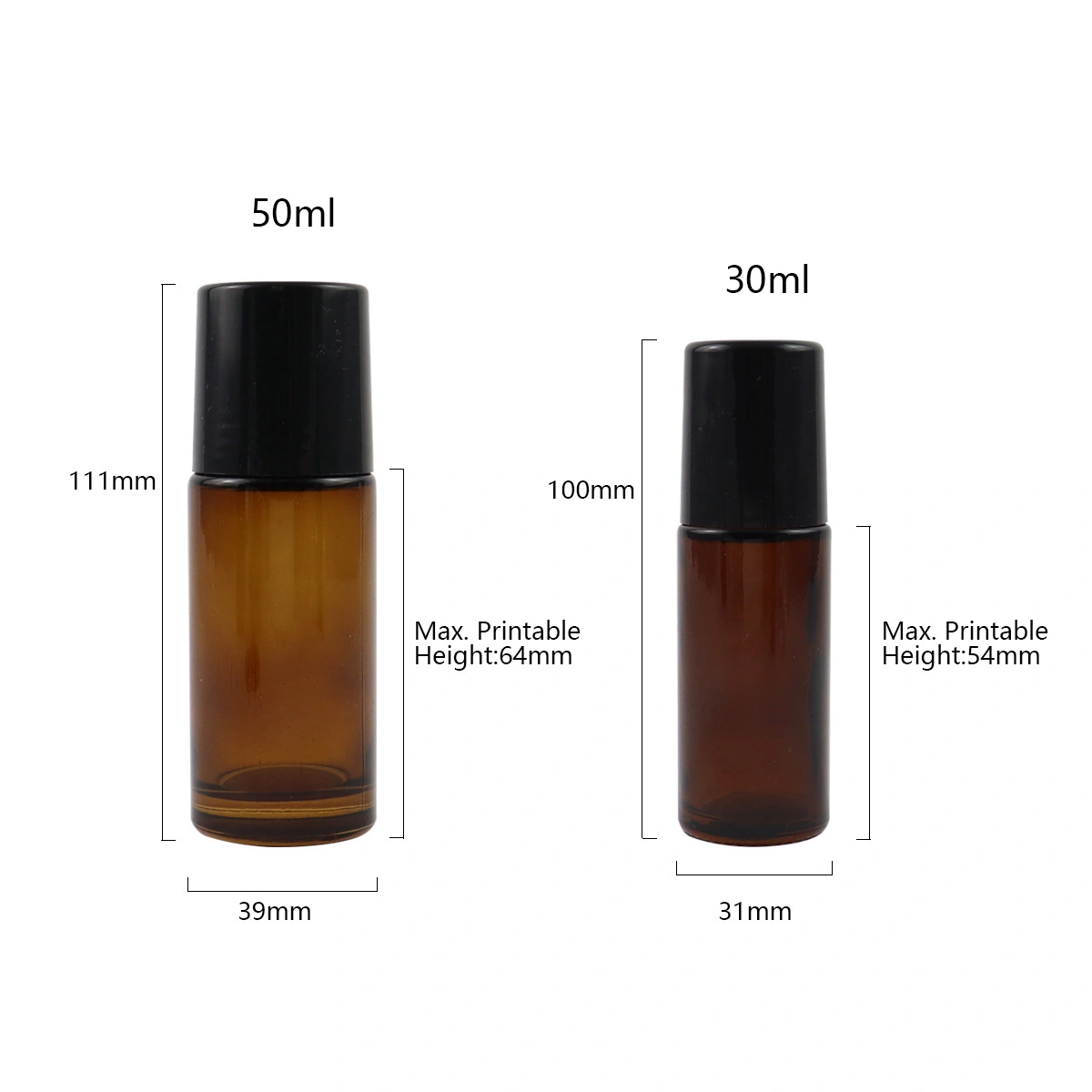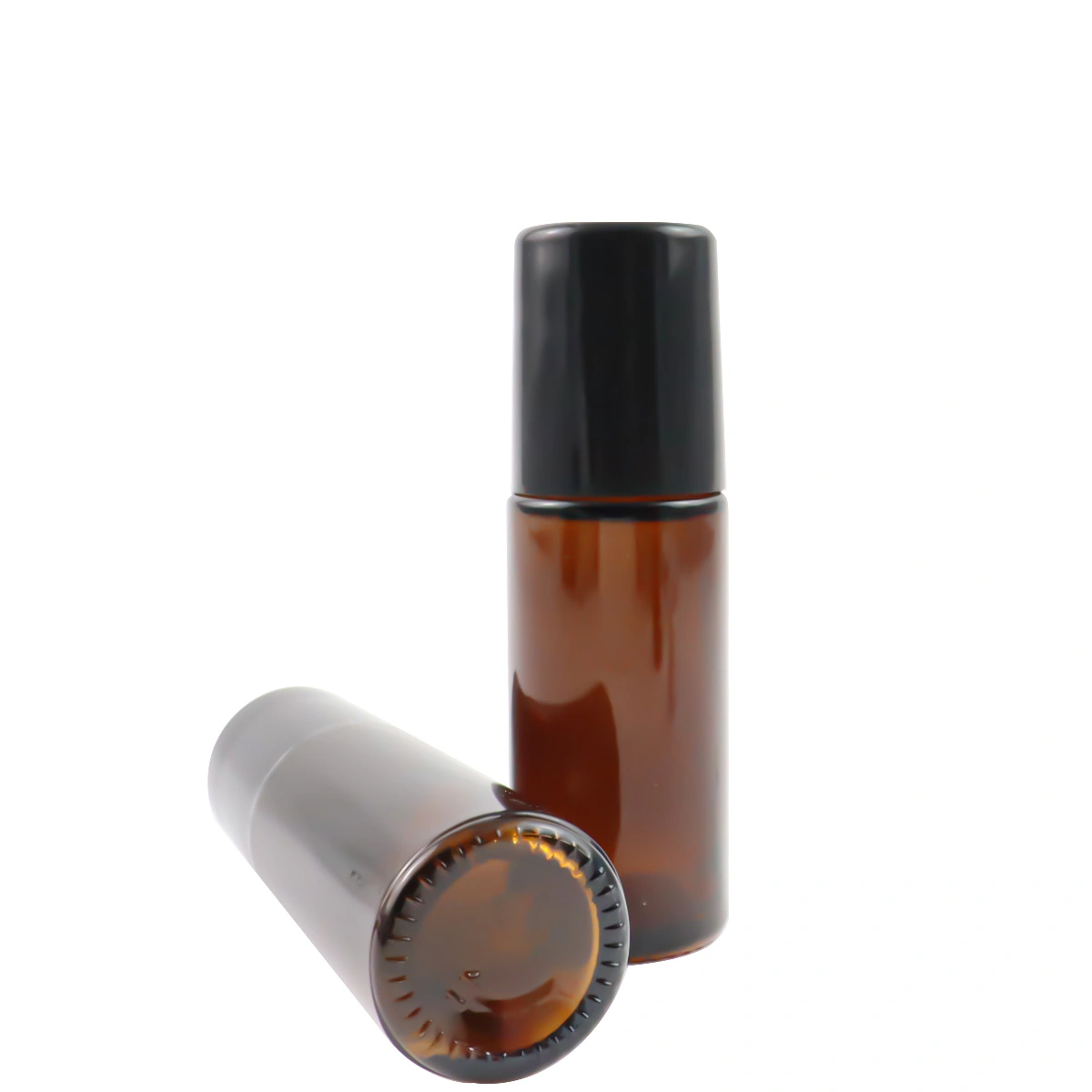 New Arrival Oil Glass Roll On Bottles 50mL Amber Roll On Glass Bottle With Screw Cap Plastic Roller