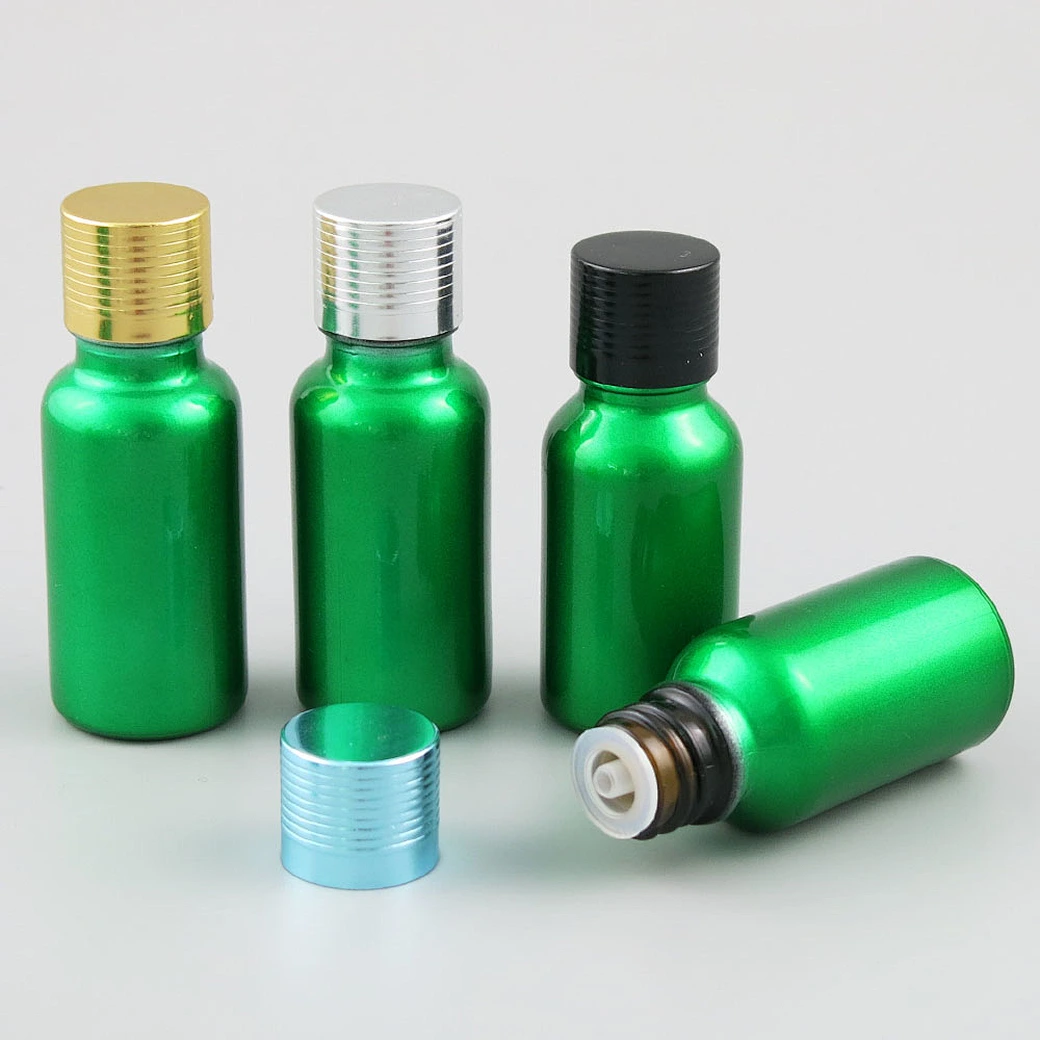 Pearl green glass essential oil bottles containers packaging with reducer aluminum lids 100ml 50ml 30ml 20ml 15ml 10ml 5ml