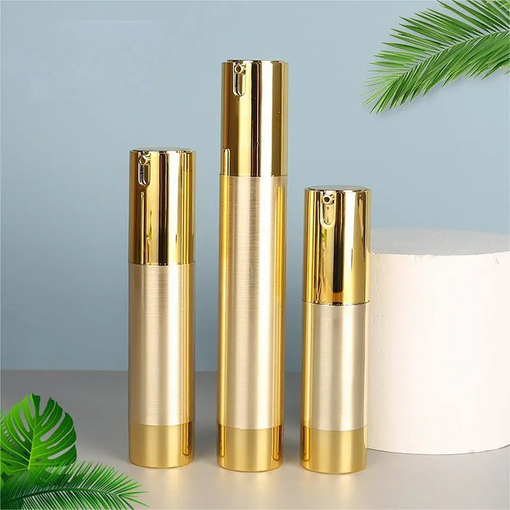 | product name | Plastic U-shaped press vacuum bottle 15 30 50ml bright gold cosmetic dispensing lotion vacuum bottle |