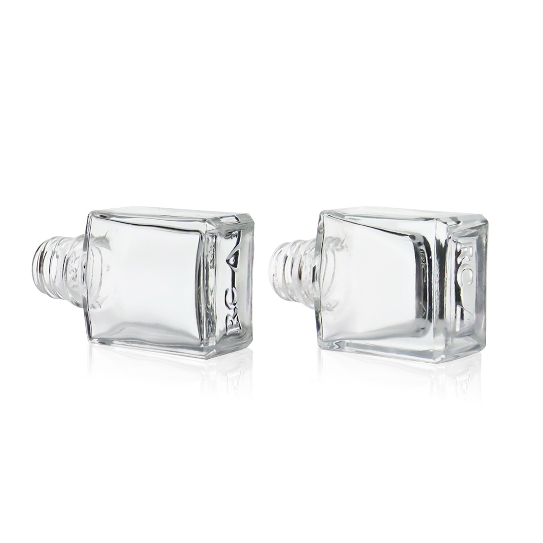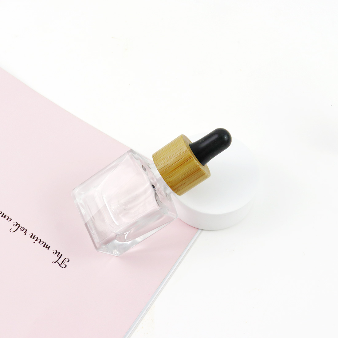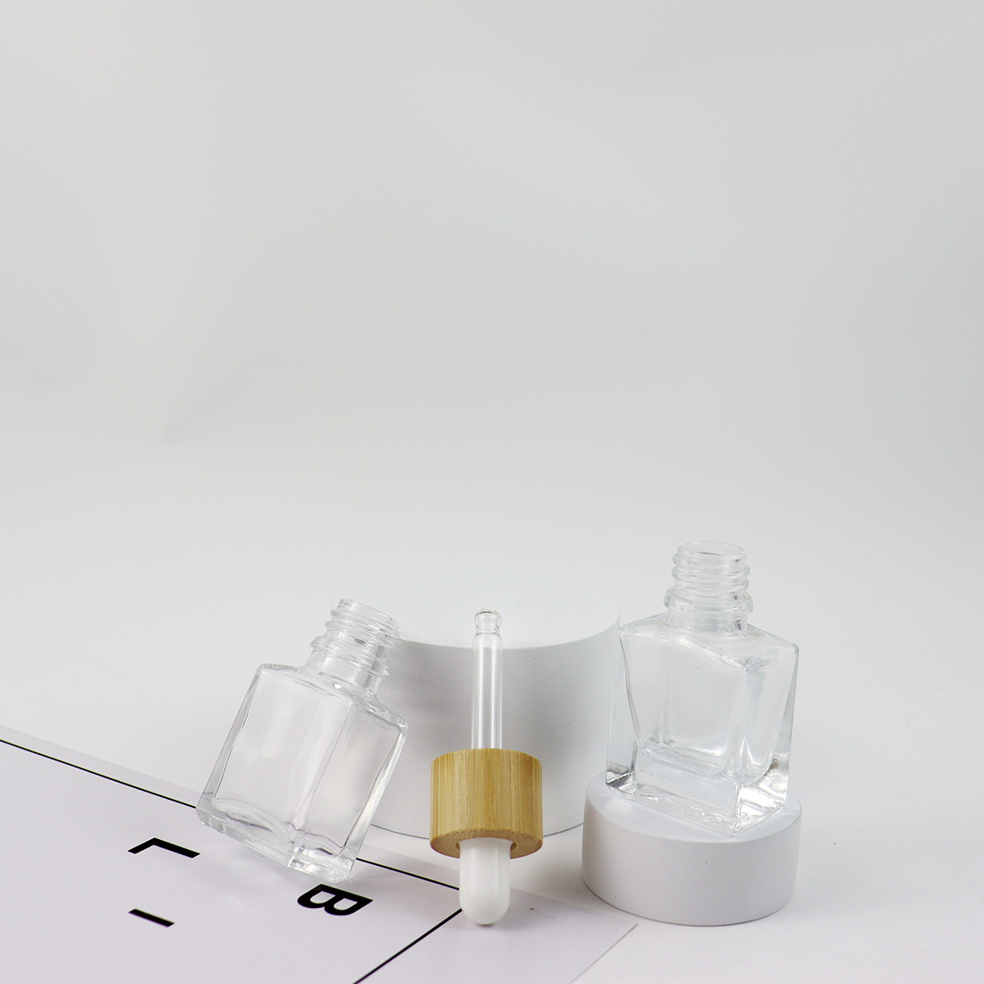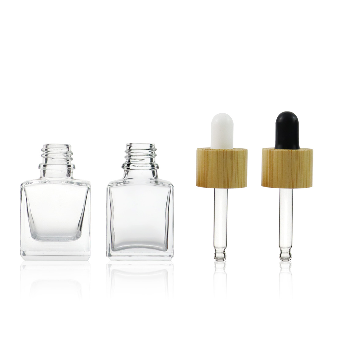 Popular Empty Clear Flat Square Rectangle 12mL Cosmetic Skincare Packaging Glass Dropper Oil Serum Bottle With Bamboo Cap