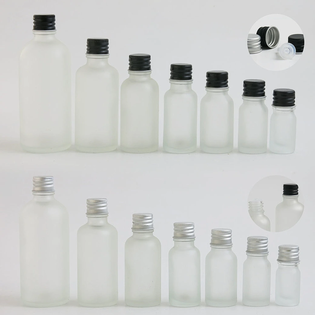 Promotion 100ml 50ml 30ml 20m 15ml 10ml 5ml frost glass Essential Oil Bottle Containers With Aluminum Lids