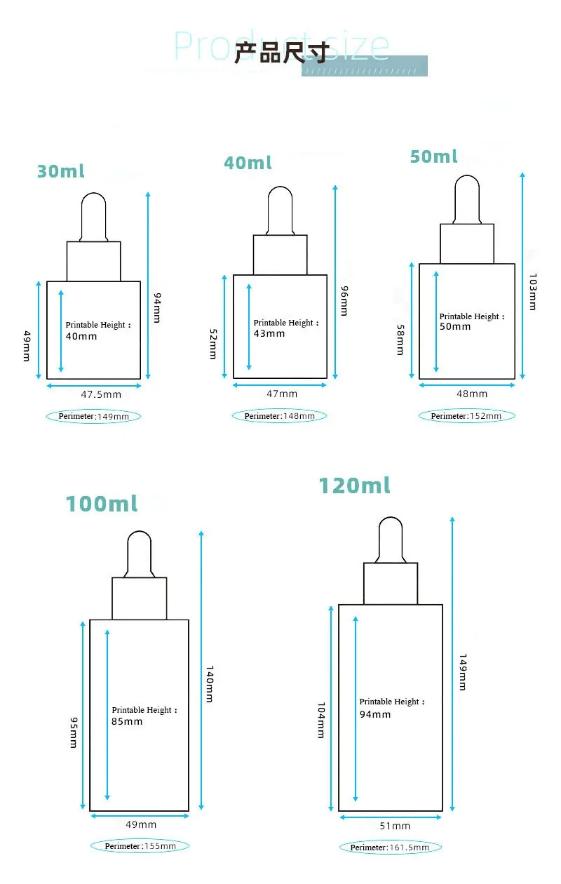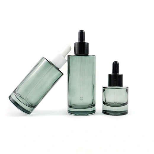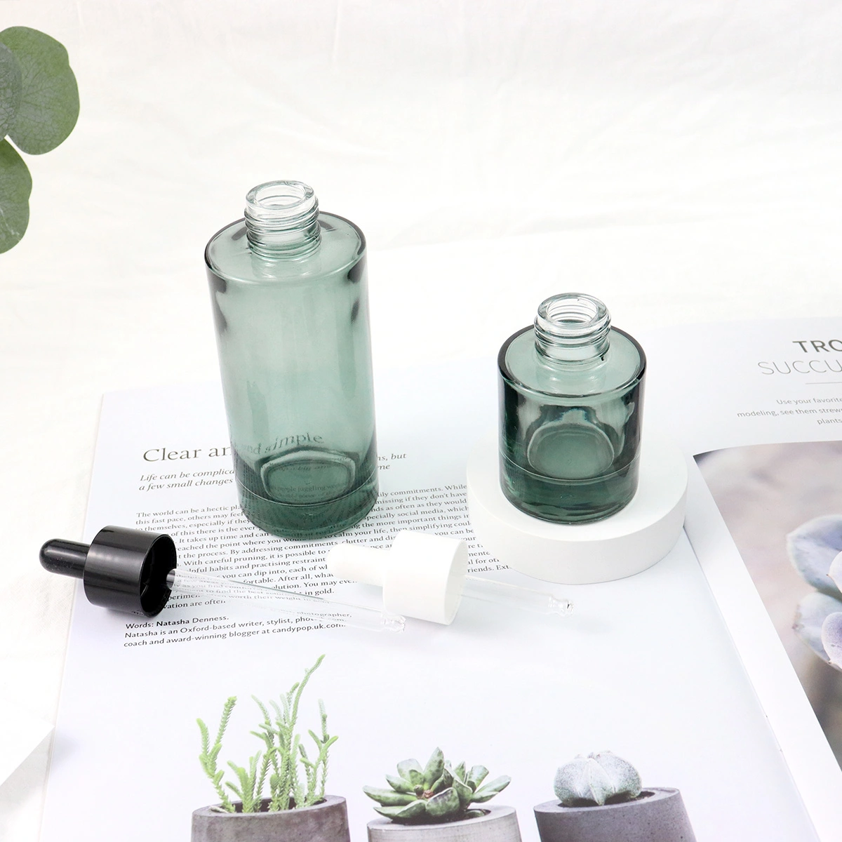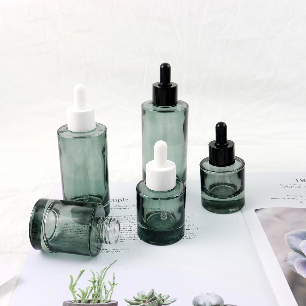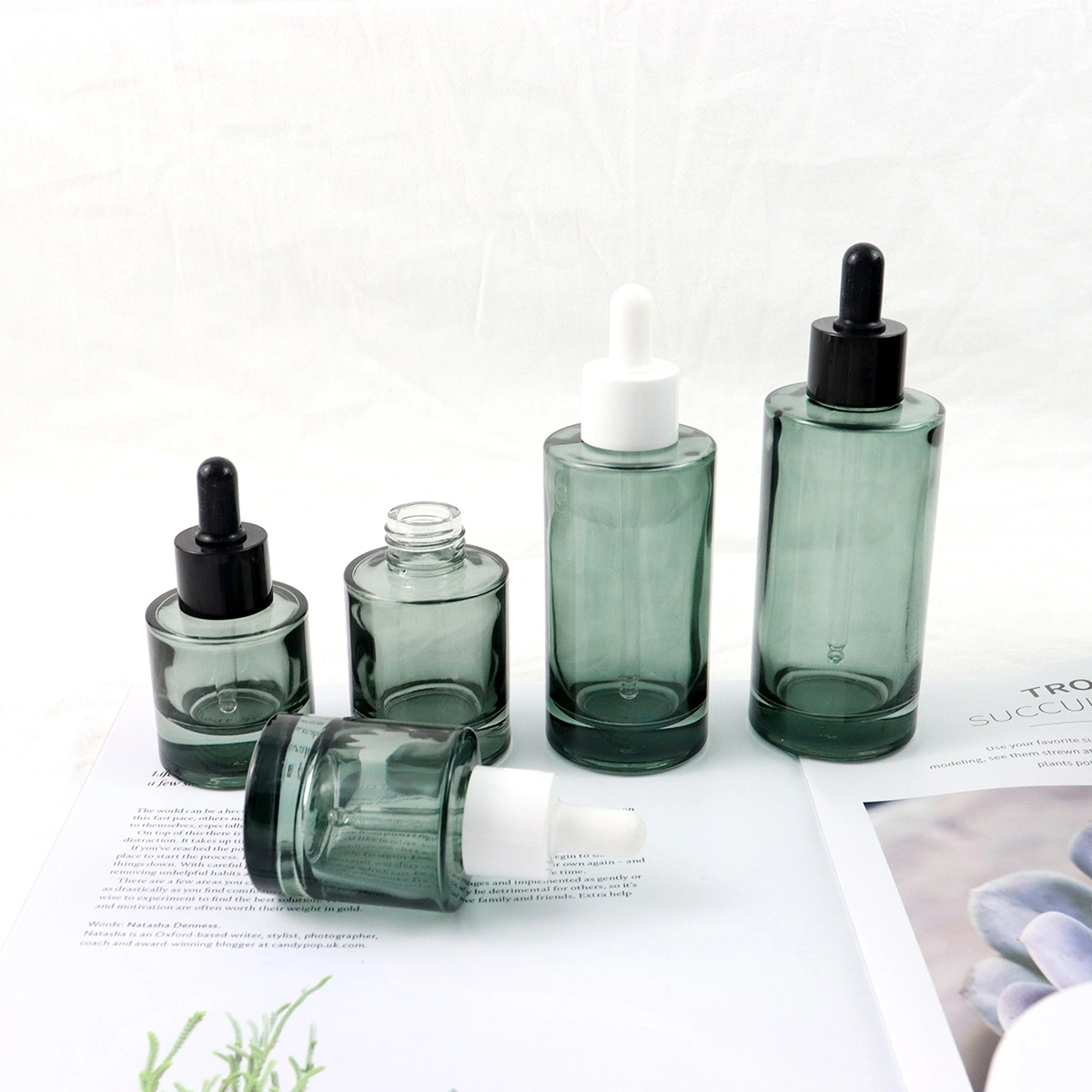 Ready to Ship Deluxe 30mL 40mL 500mL 100mL 120mL Light Green Flat Shoulder Glass Cosmetic Bottle Screw Top Dropper Bottle