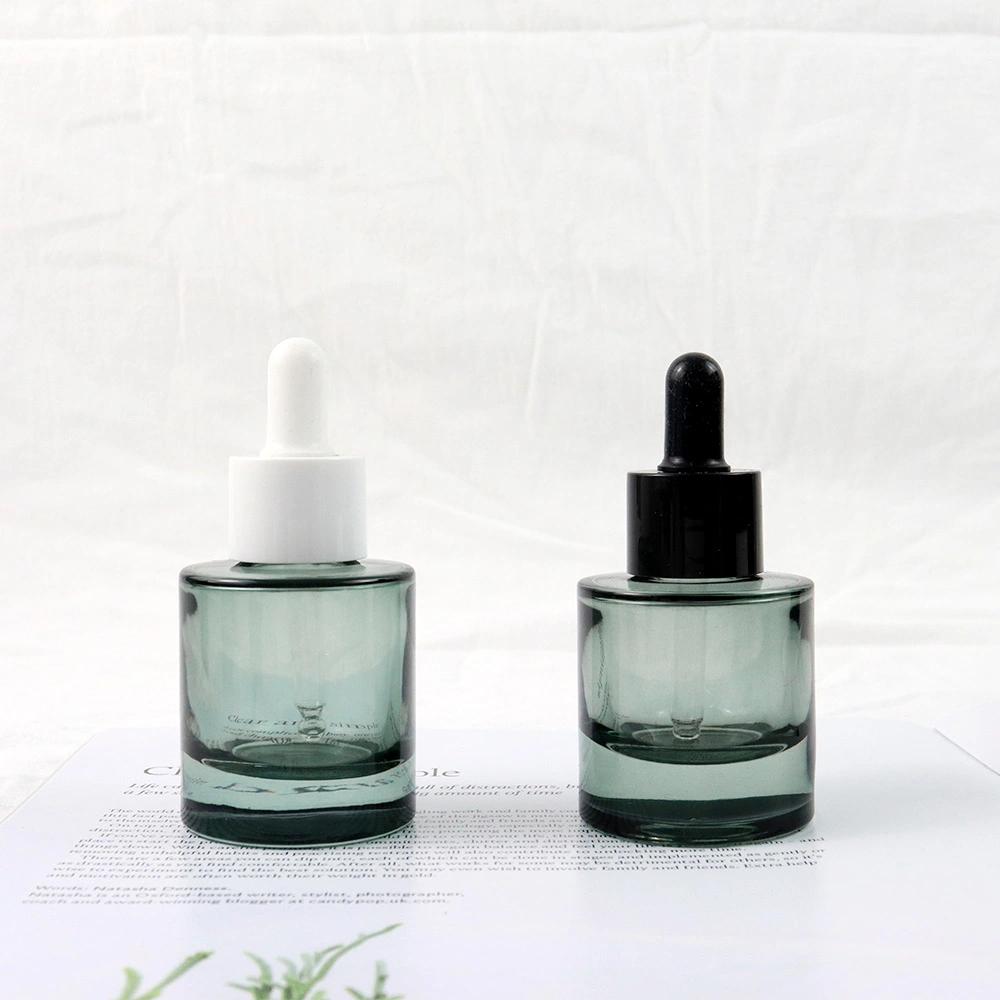 Light Green Flat Shoulder Glass Cosmetic Bottle Screw Top Dropper Bottle