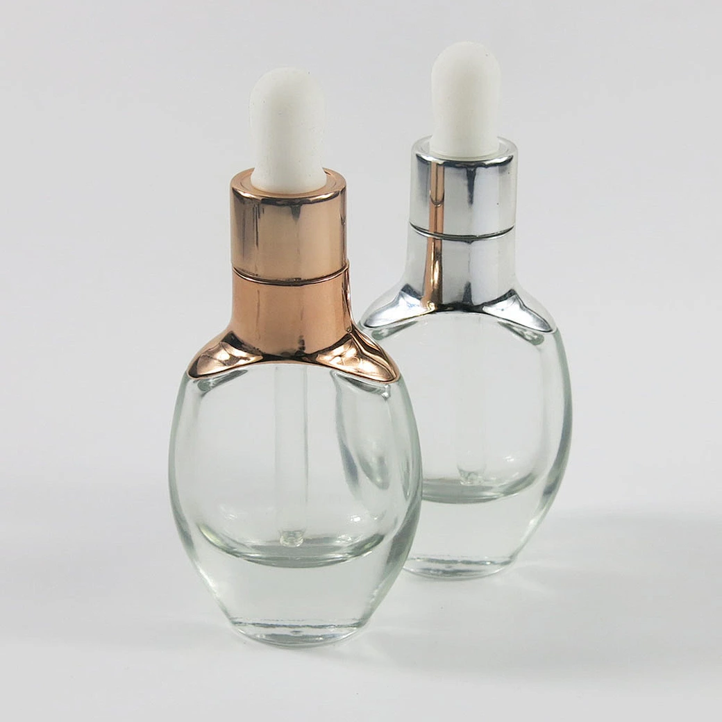 Refillable 30ml clear glass essential oil bottle with silver amber dropper Glass essential oil container
