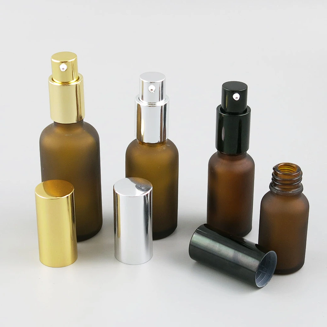 Refillable amber Glass Cream Lotin Pump Bottles Transparent Glass Containers With Pump 100ml 50ml 30ml 20ml 15ml 10ml