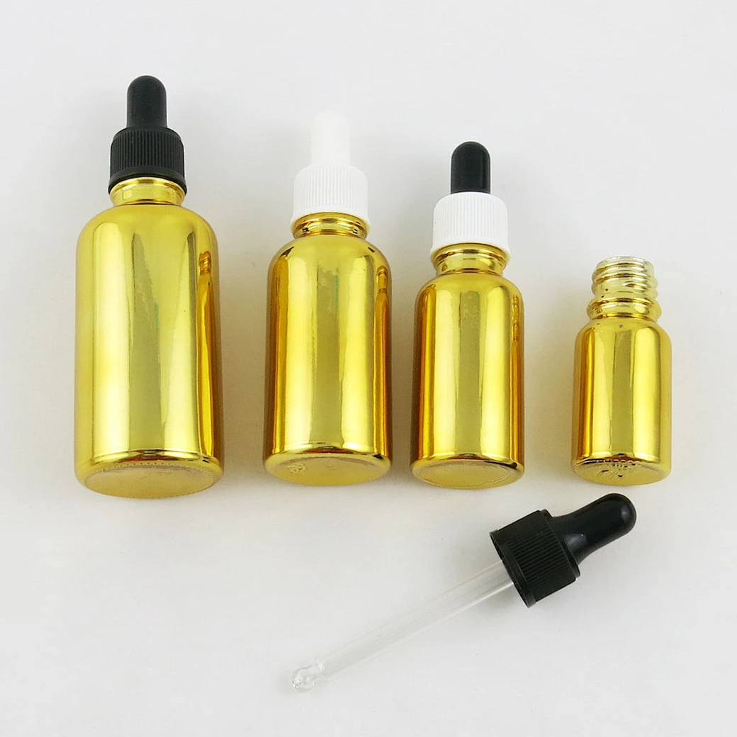 Refillable Empty Gold Glass Essential Oil Bottle With Plastic Dropper 5ml 10ml 20ml 30ml 50ml 100ml
