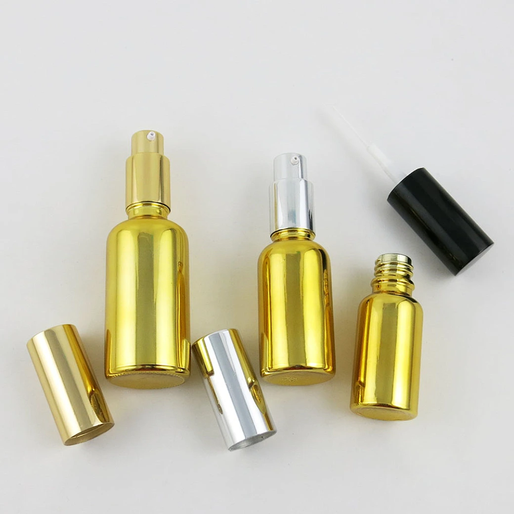 Refillable gold Glass Cream Lotin Pump Bottles Transparent Glass Containers With Pump 100ml 50ml 30ml 20ml 15ml 10ml