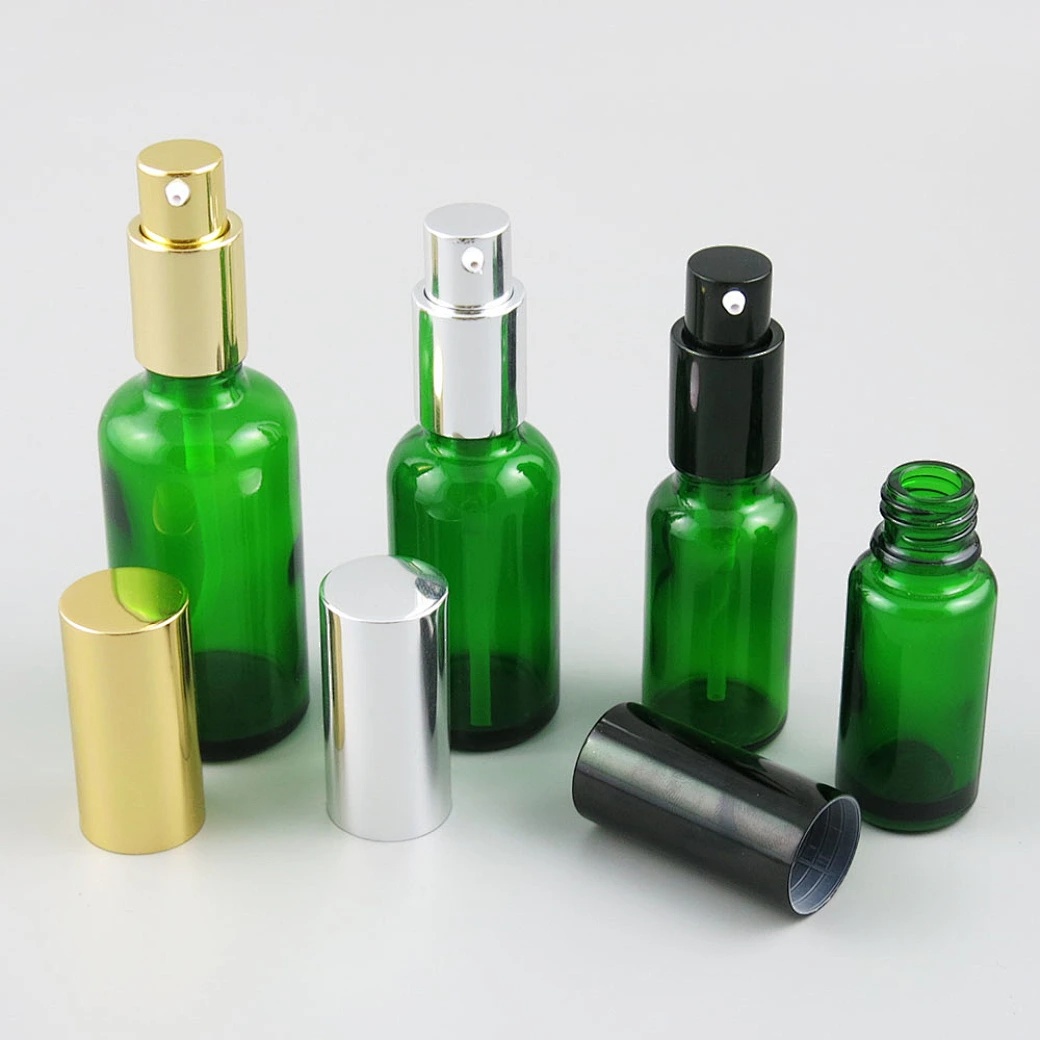 Refillable green Glass Cream Lotin Pump Bottles Transparent Glass Containers With Pump 100ml 50ml 30ml 20ml 15ml 10ml 5ml