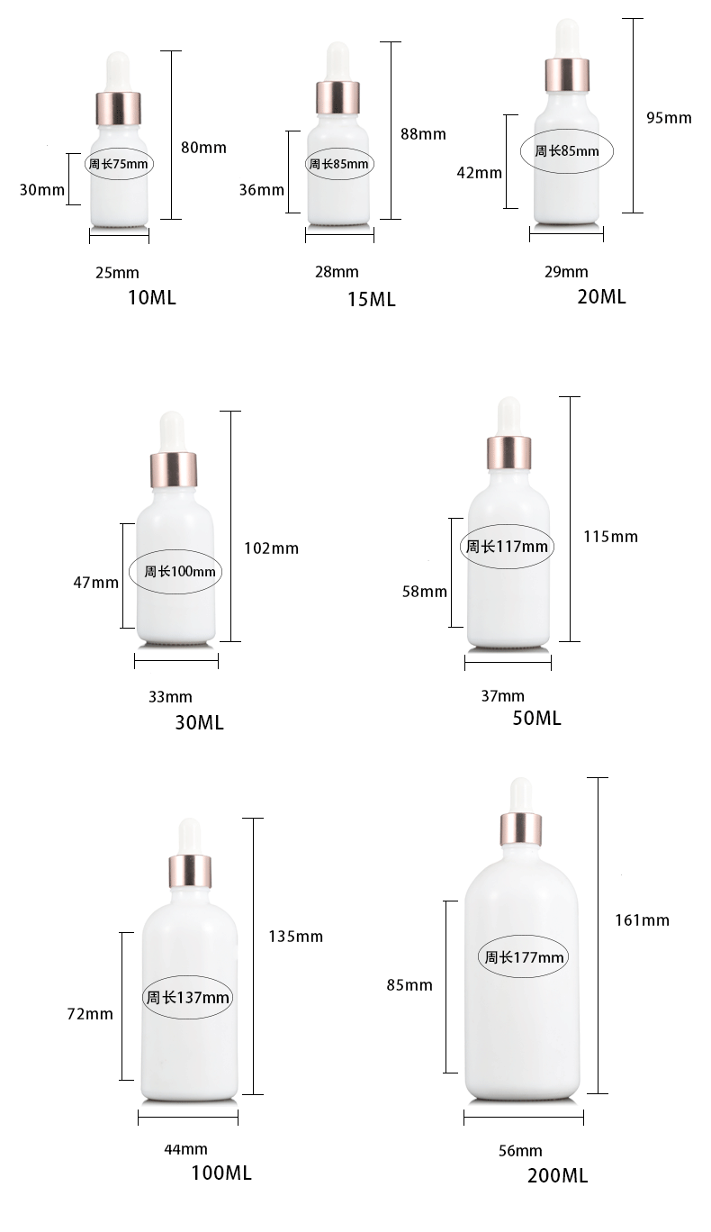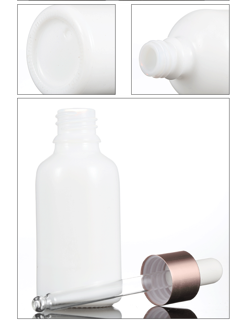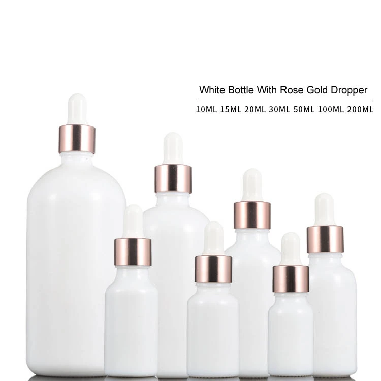 RTS 10ML 15ML 20ML 30ML 50ML 100ML 200ML Glass Essetnial Oil Milky White Dropper Bottle With Rose Gold Dropper