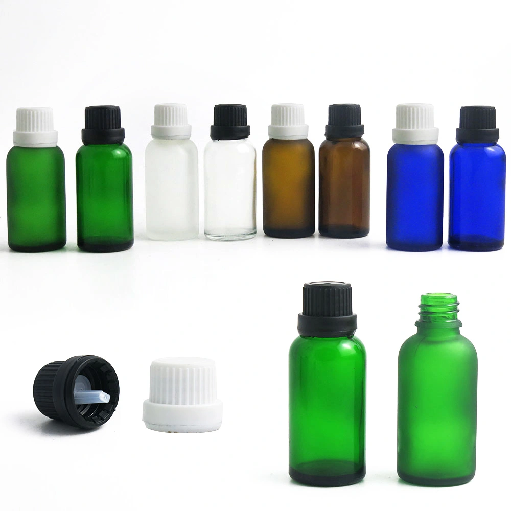 RTS Childproof Tamper Evident Screw Cap 30ml Blue Amber Green Clear Essential Oil Aromatherapy Glass Bottle With Orifice Reducer