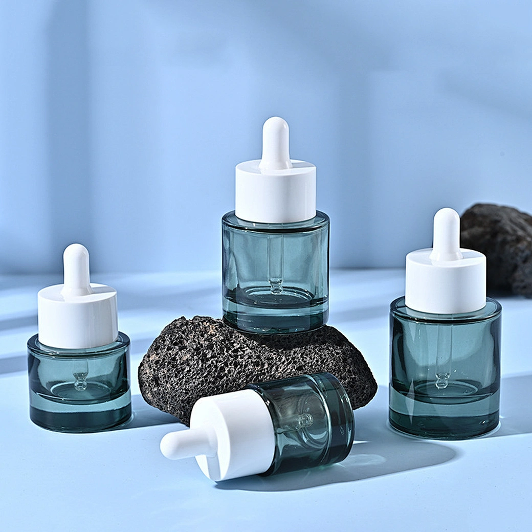Silver Vein 15-50ml Large Circle Serum Bottle Dark Green Round Flat Shoulder Essential Oil Bottle 30ml Thick Bottom Dropper Bottle