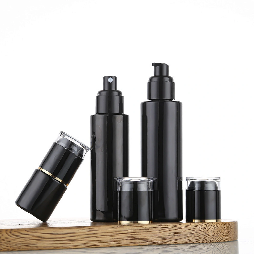Stock 30ml Glossy Black Lotion Dispenser Bottle 50/60 Spray Bottle 100ml Cosmetic Flat Shoulder Dropper Glass Bottle