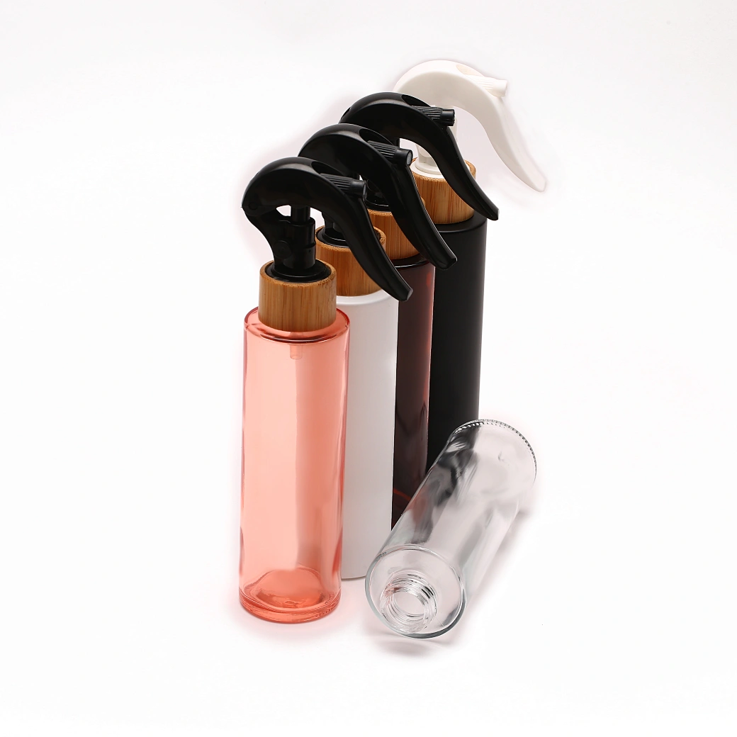 Well Selling personal care Bamboo Trigger Pump Sprayer white clear glass Spray Bottle For Cosmetic Packing