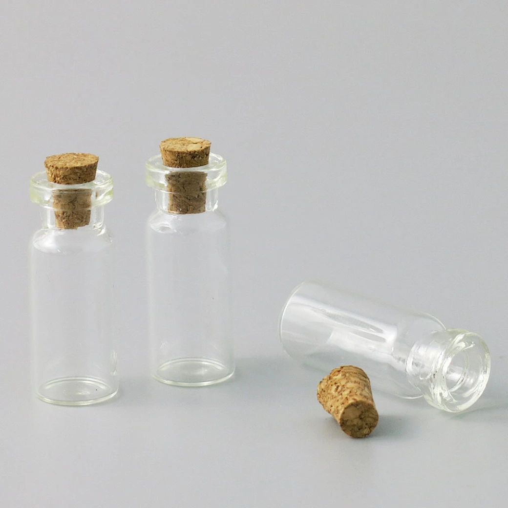 Whole sales Empty 3ml Mini Small Tiny Clear Cork Stopper Glass Bottles Vials for wedding gift 3cc Cork Vials Containers