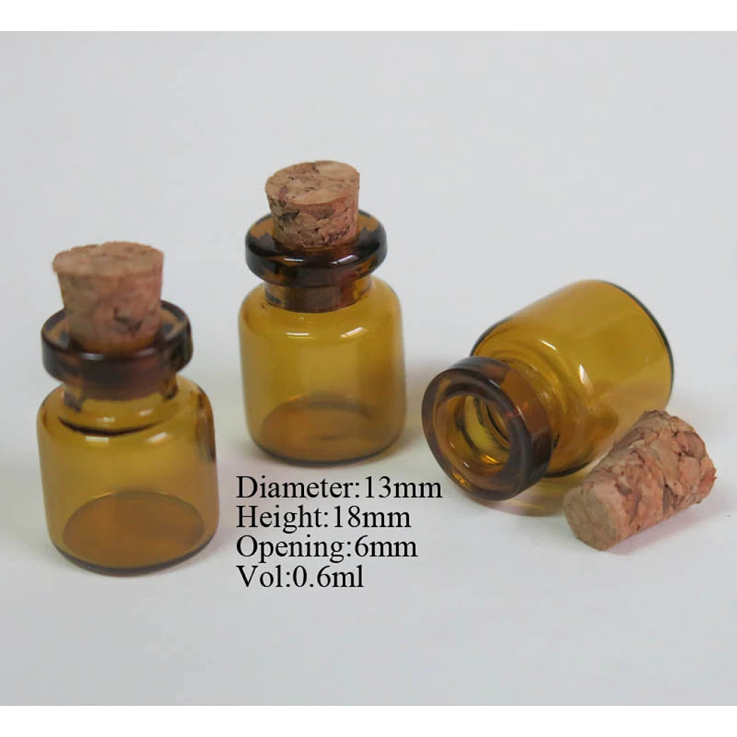 wholesale 0.6ml Mini amber Glass Bottle Pendant Clear Small Cute Glass Bottle With Eye Hook Small Cork Glass Vials Jars