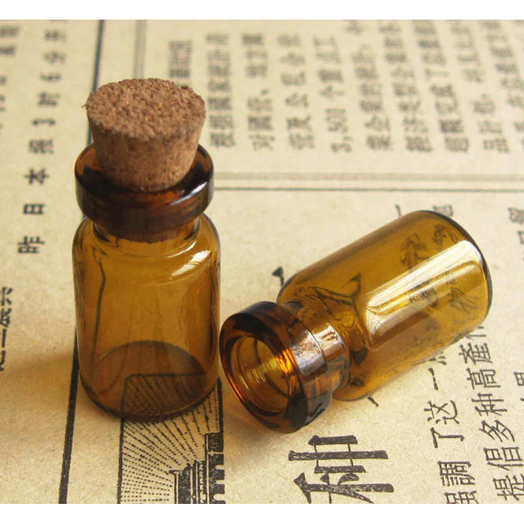 wholesale 1ml Mini amber Glass Bottle Pendant Clear Small Cute Glass Bottle With Eye Hook Small Cork Glass Vials Jars