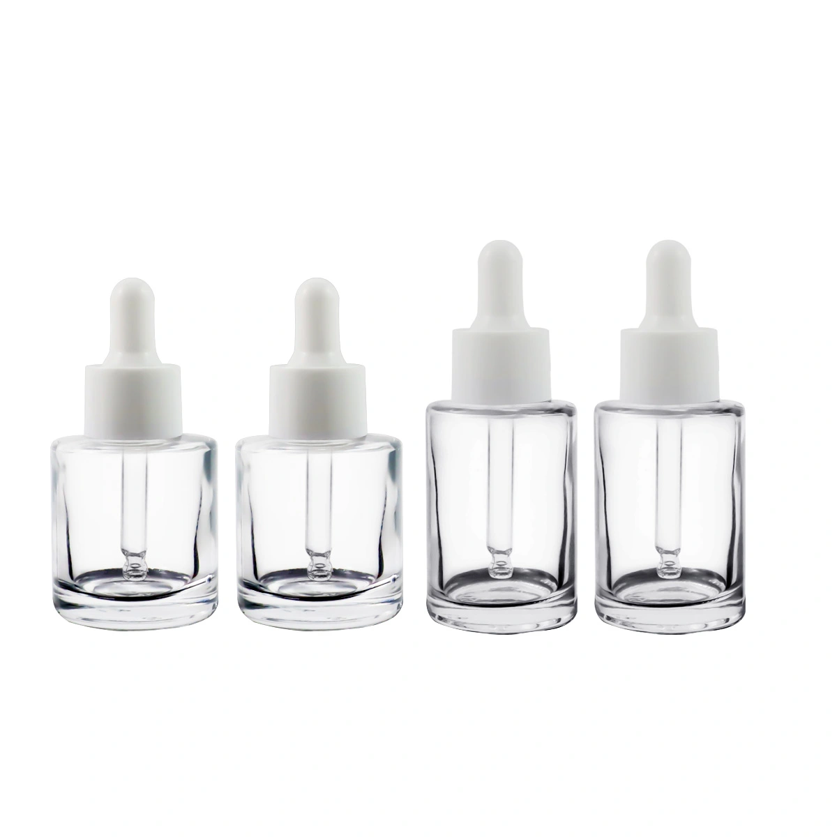 Wholesale 30mL Clear Round Glass Dropper Bottle Flat Shoulder For Essential Oil With White Cap