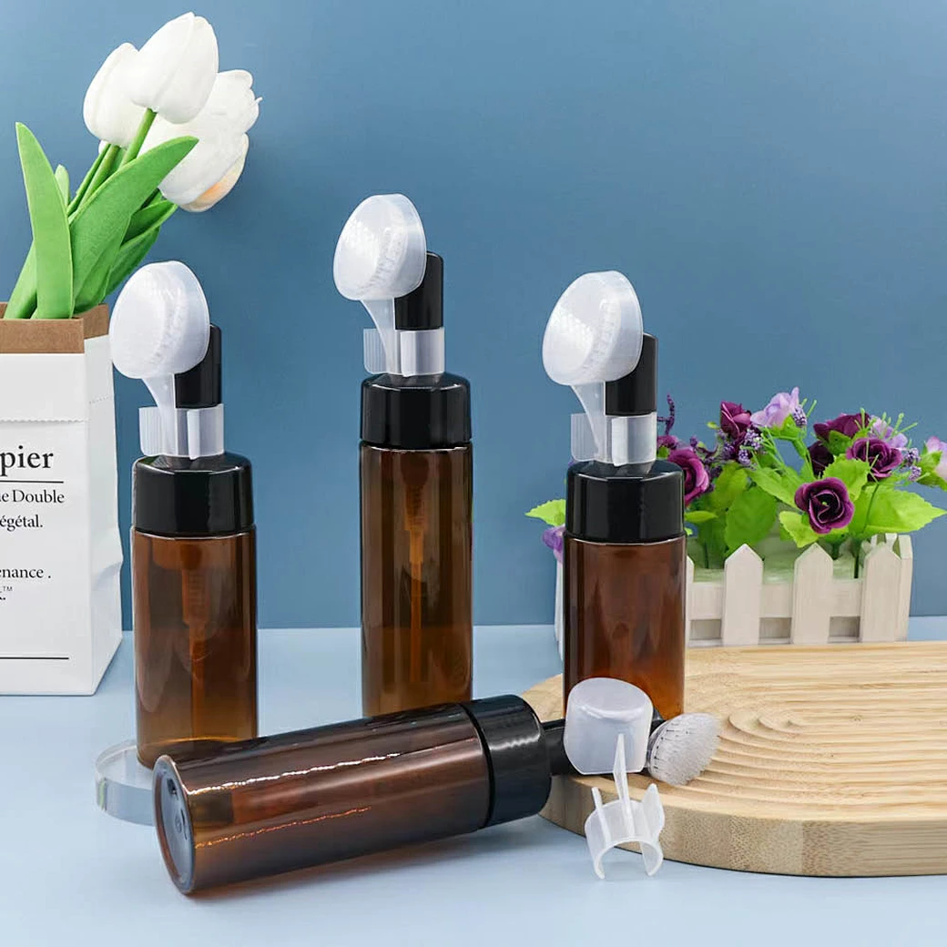 Wholesale Amber Clear Cosmetic Packaging 100mL 120mL 150mL 200mL With Brush Foam Pump Head Glass Bottle With Protective Case