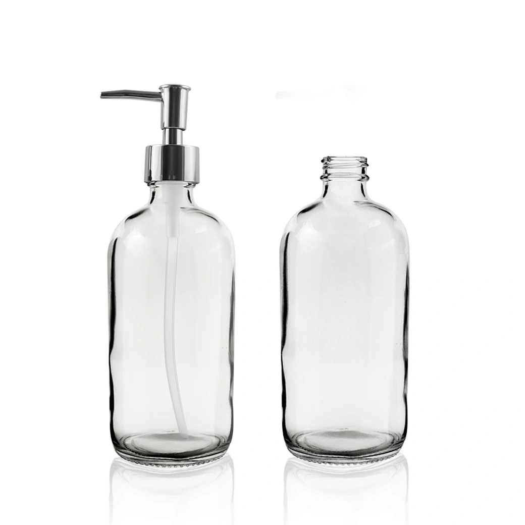 Wholesale Cheap Clear Glass Hand Soap Dispenser Bottle With Rust Proof Pump 500ml Round Glass Soap Dispenser With Pump Lid