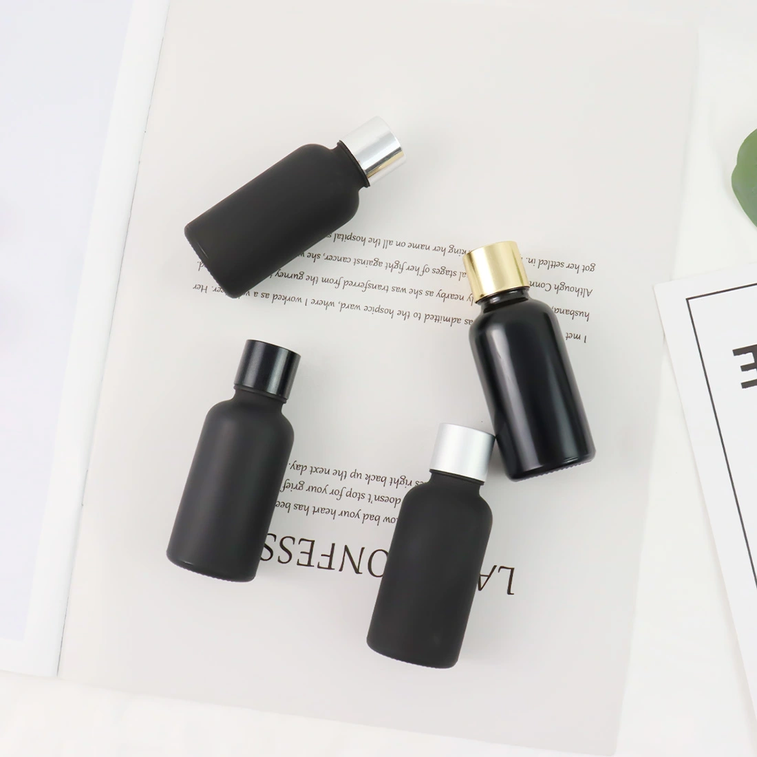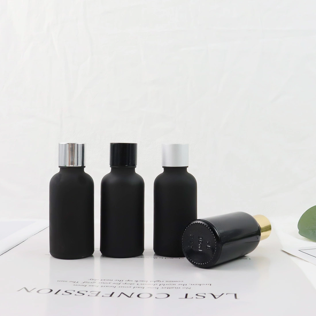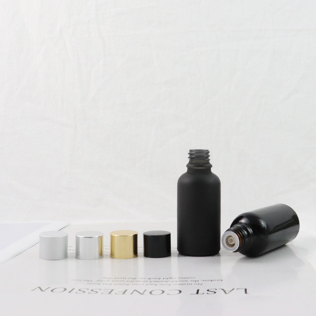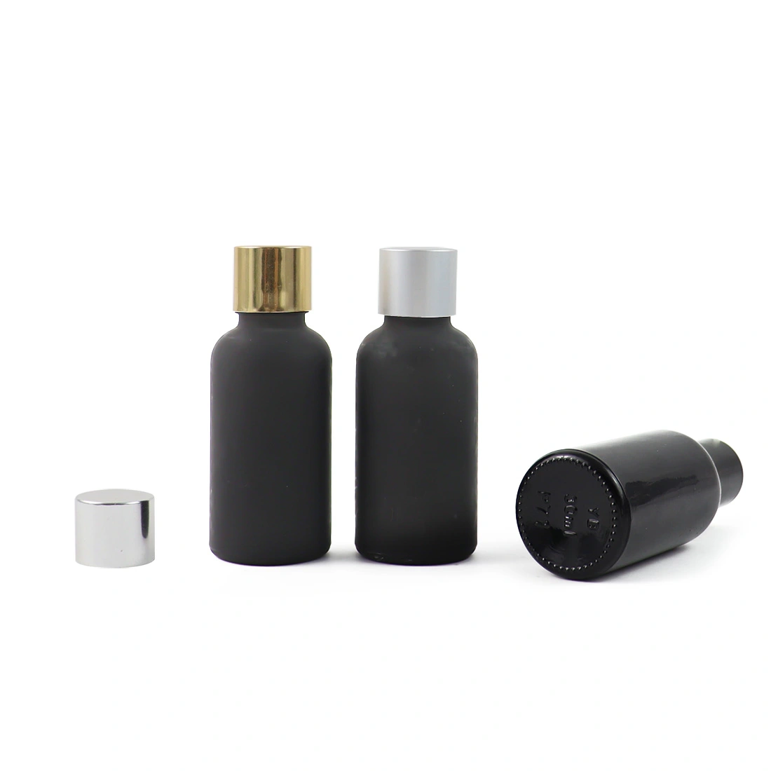 Wholesale Empty 30ml Black Frost Glass Essential Oil Bottle With Aluminum Caps For Cosmetic
