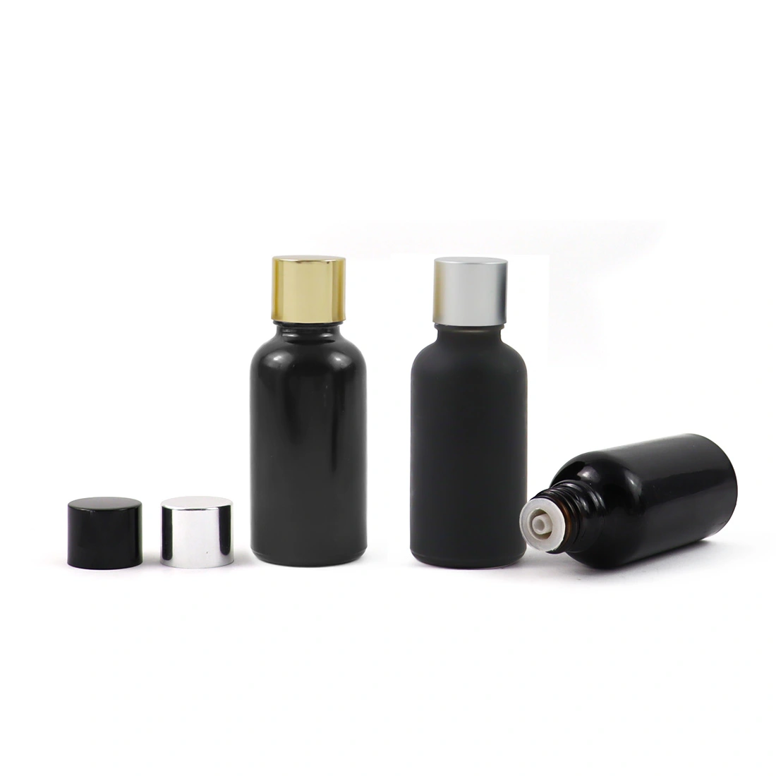 Wholesale Empty 30ml Black Frost Glass Essential Oil Bottle With Aluminum Caps For Cosmetic