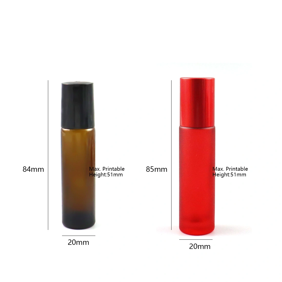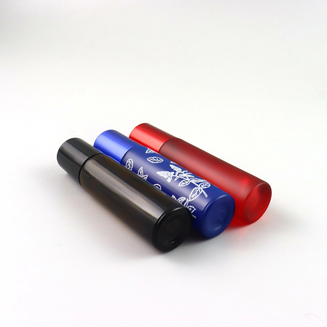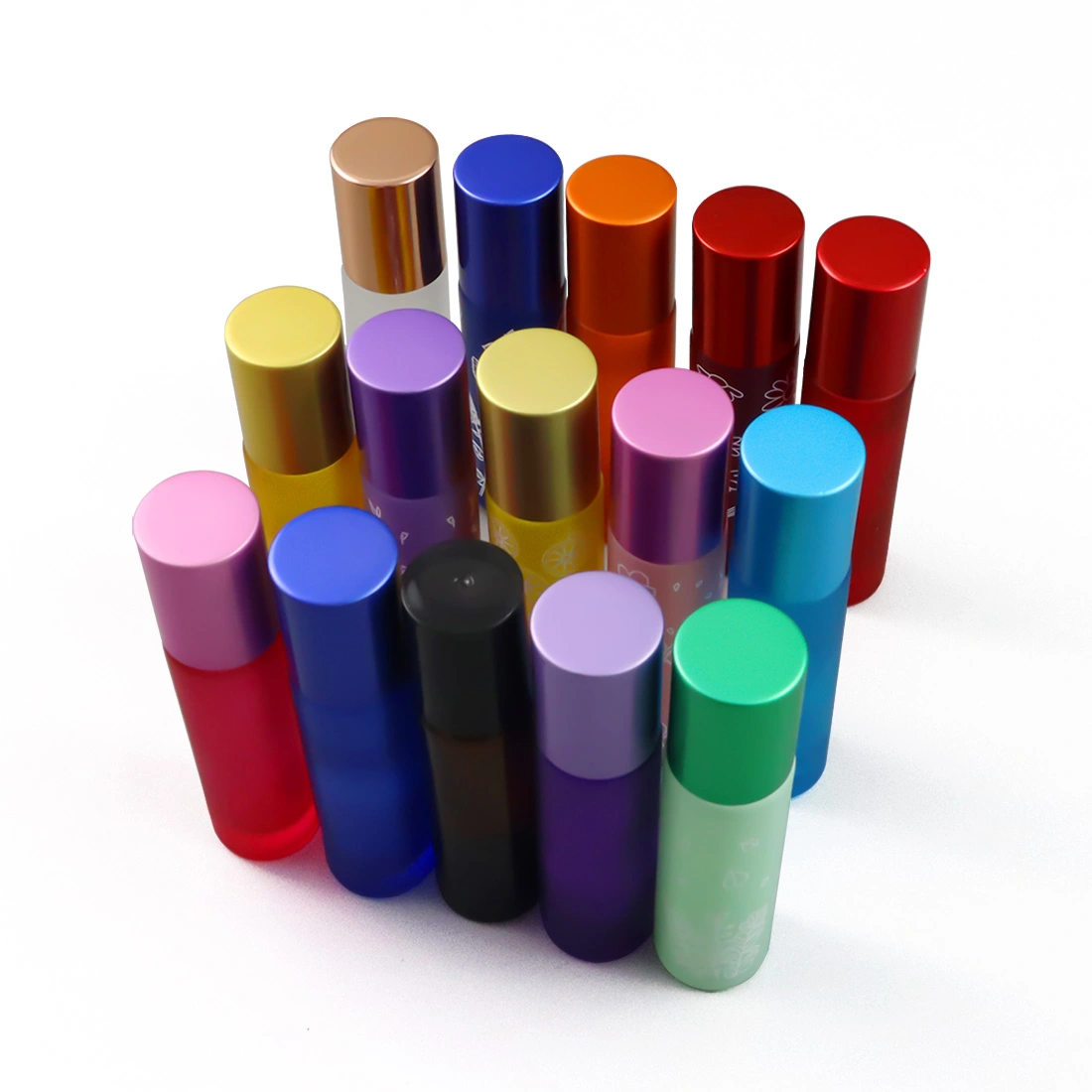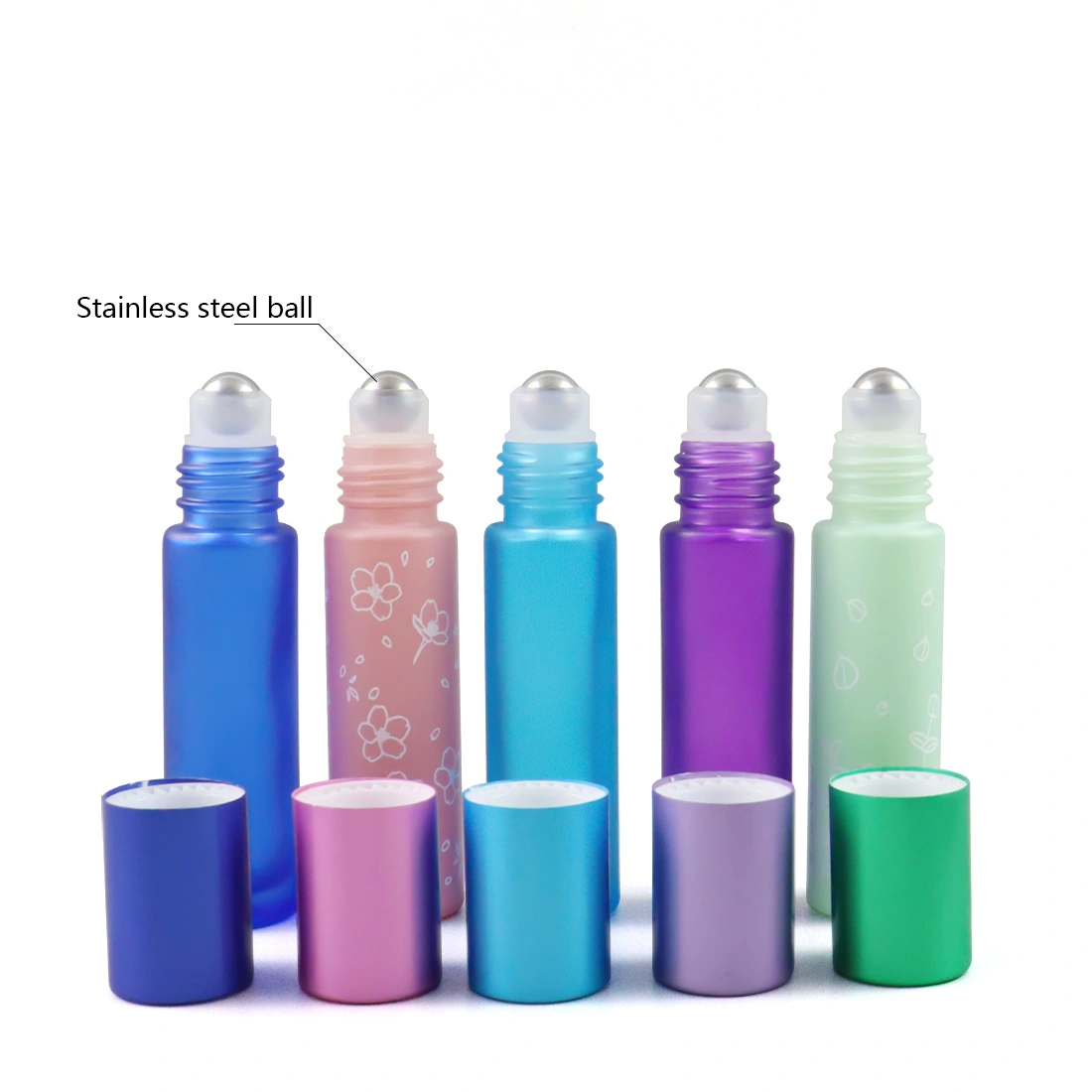 Wholesale Empty Essential Oil Perfume Frosted Clear Amber Blue Glass Roll On Bottle With Metal Roller Ball