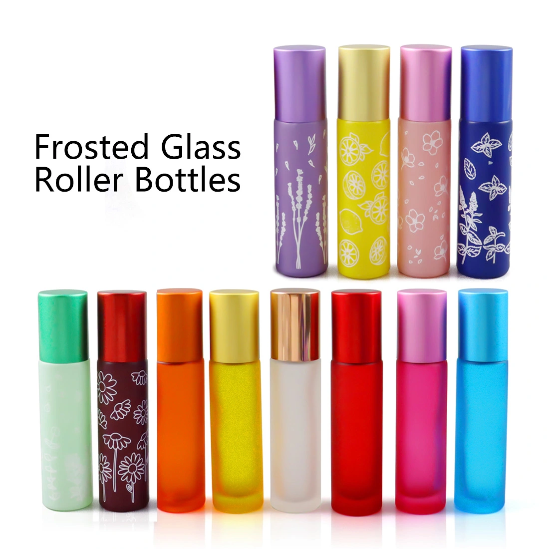 Wholesale Empty Essential Oil Perfume Frosted Clear Amber Blue Glass Roll On Bottle With Metal Roller Ball
