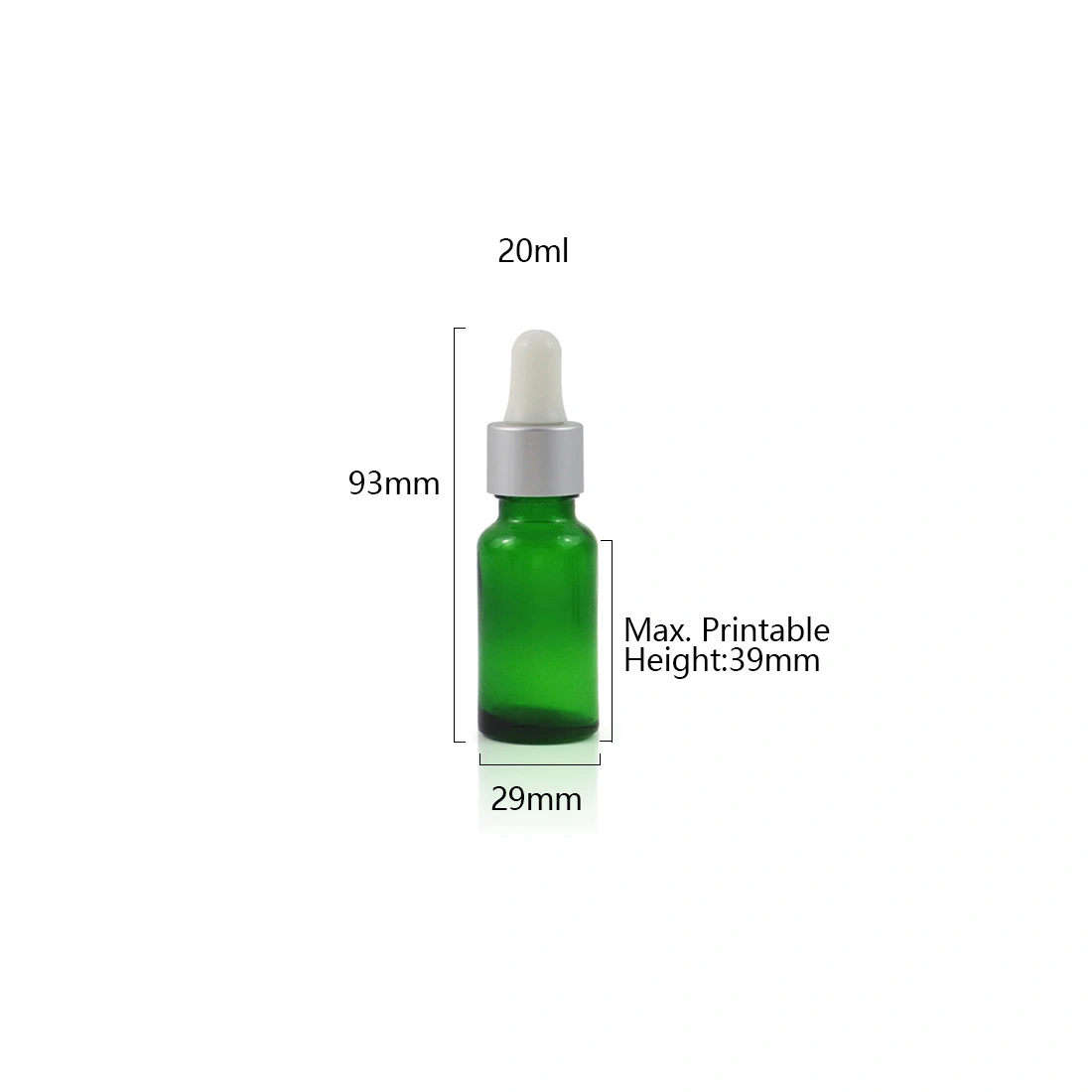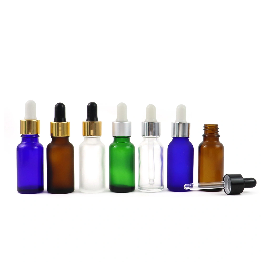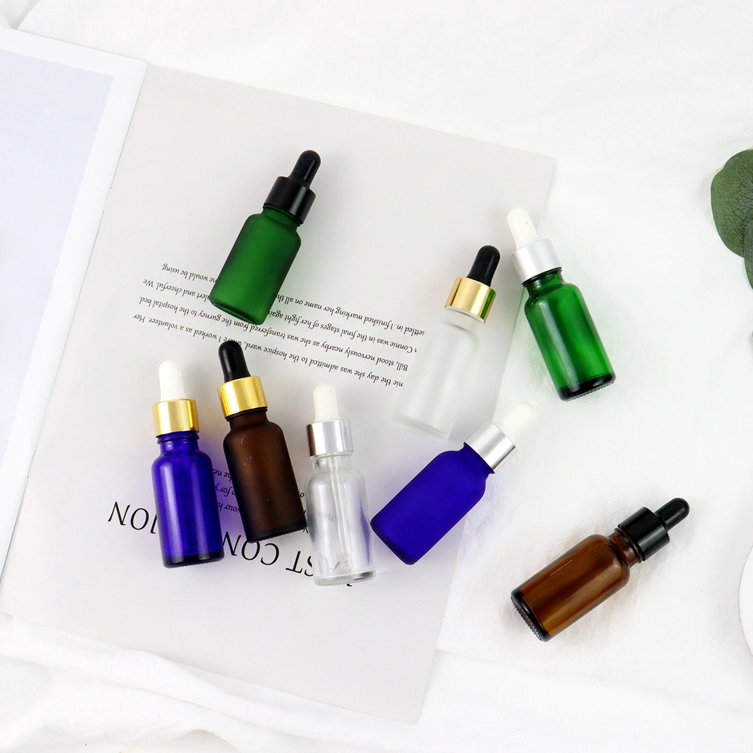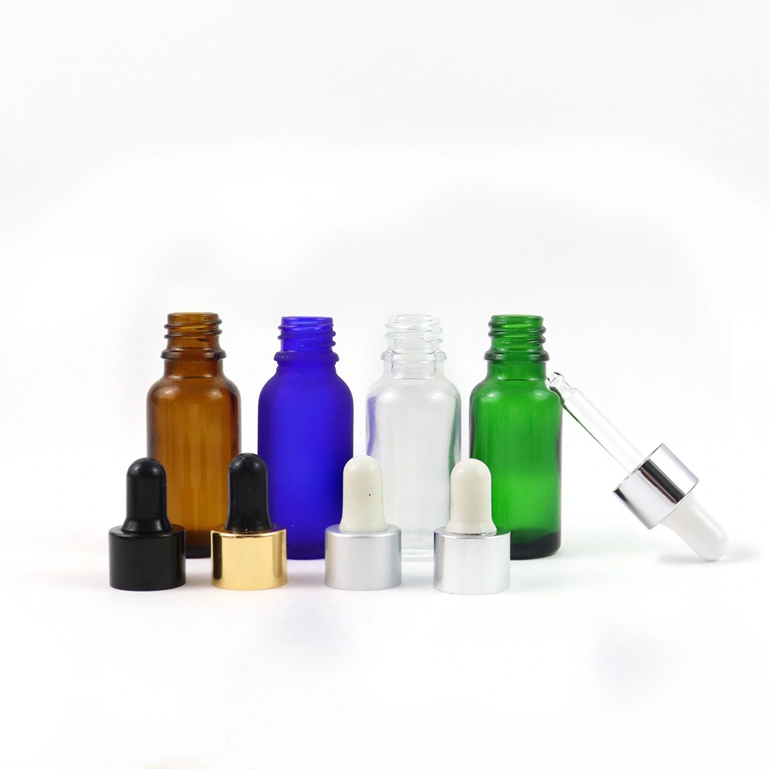 Wholesale Factory Direct Facial Essential Oil Glass Bottle 20mL Green Clear Blue Amber Dropper Bottle Cosmetic Black White Lid