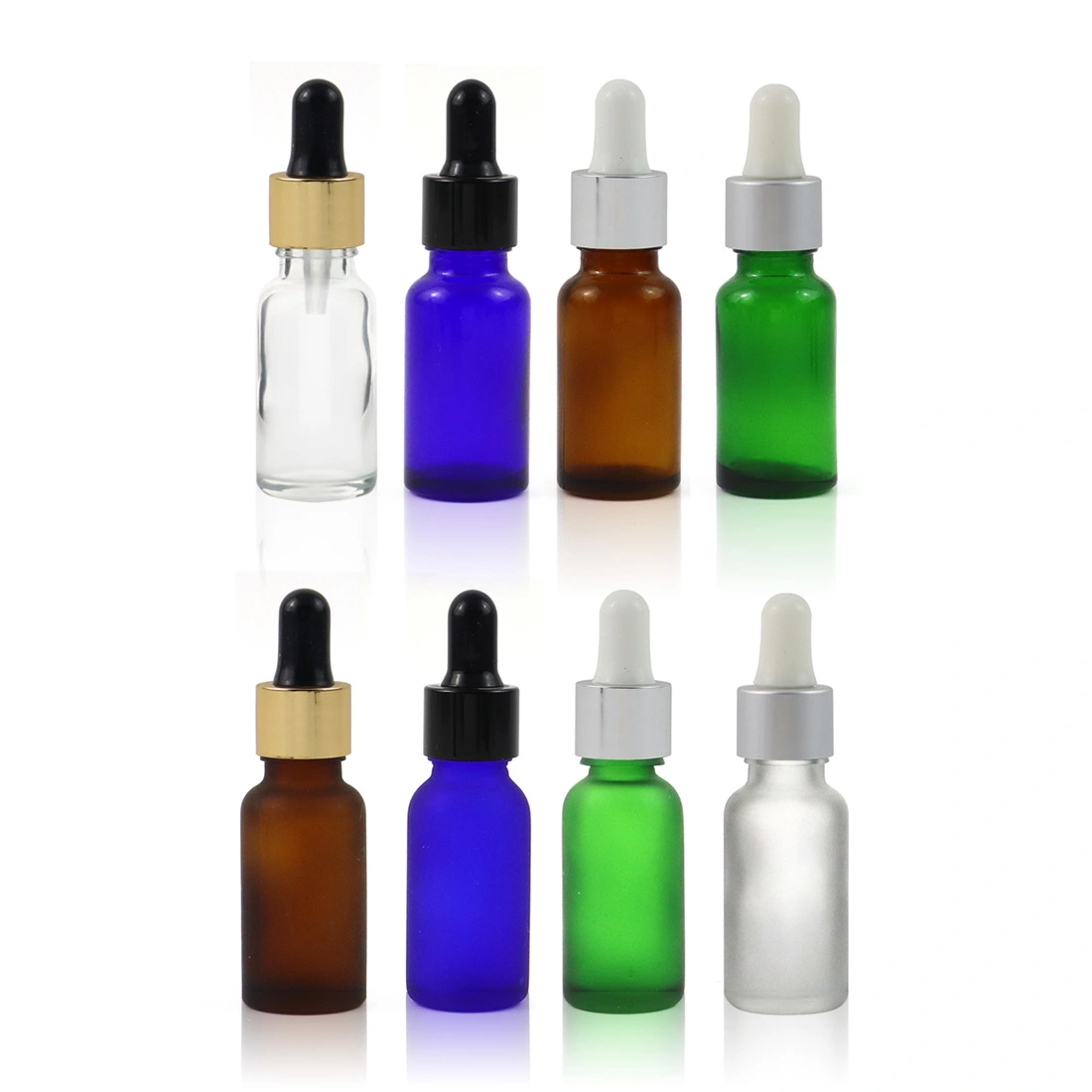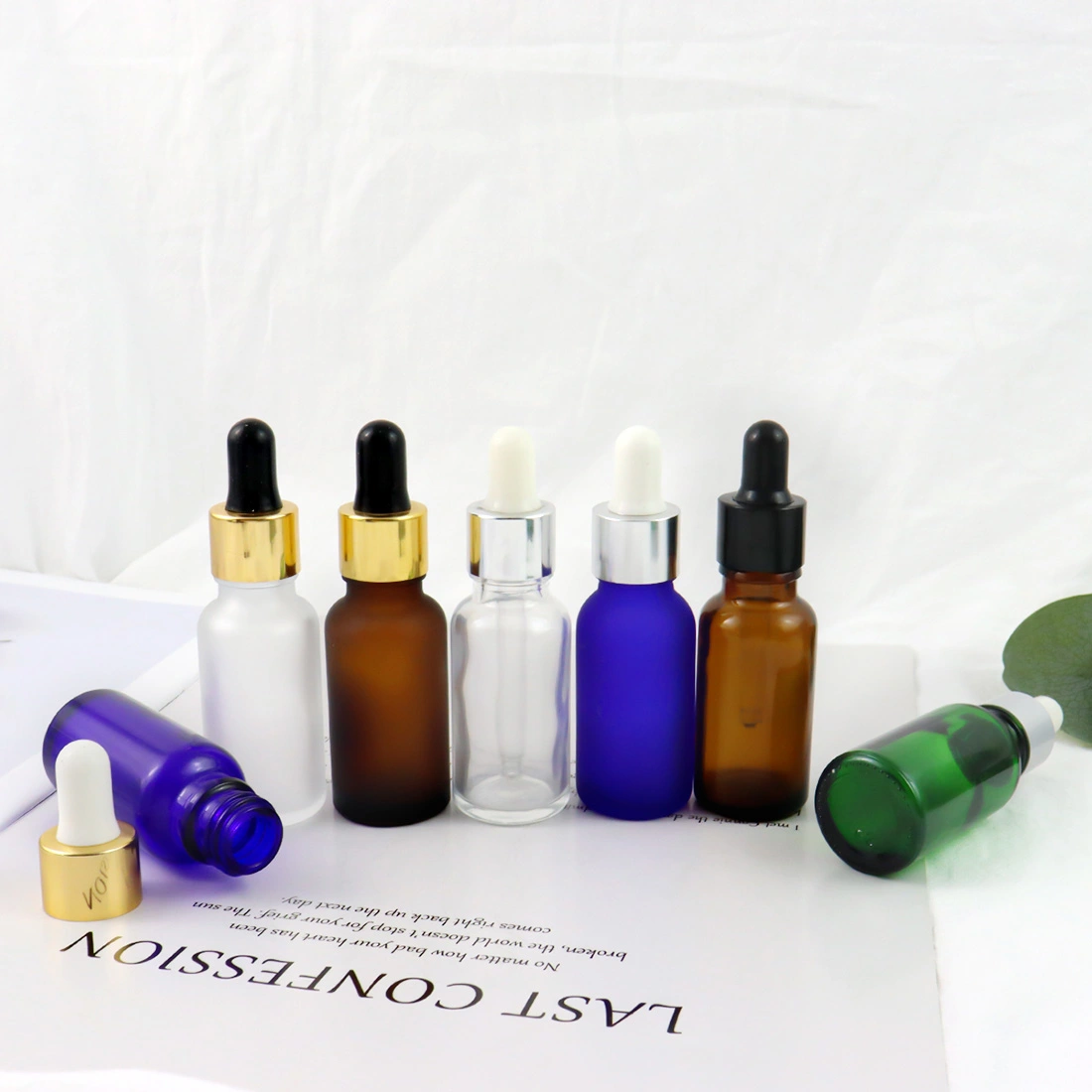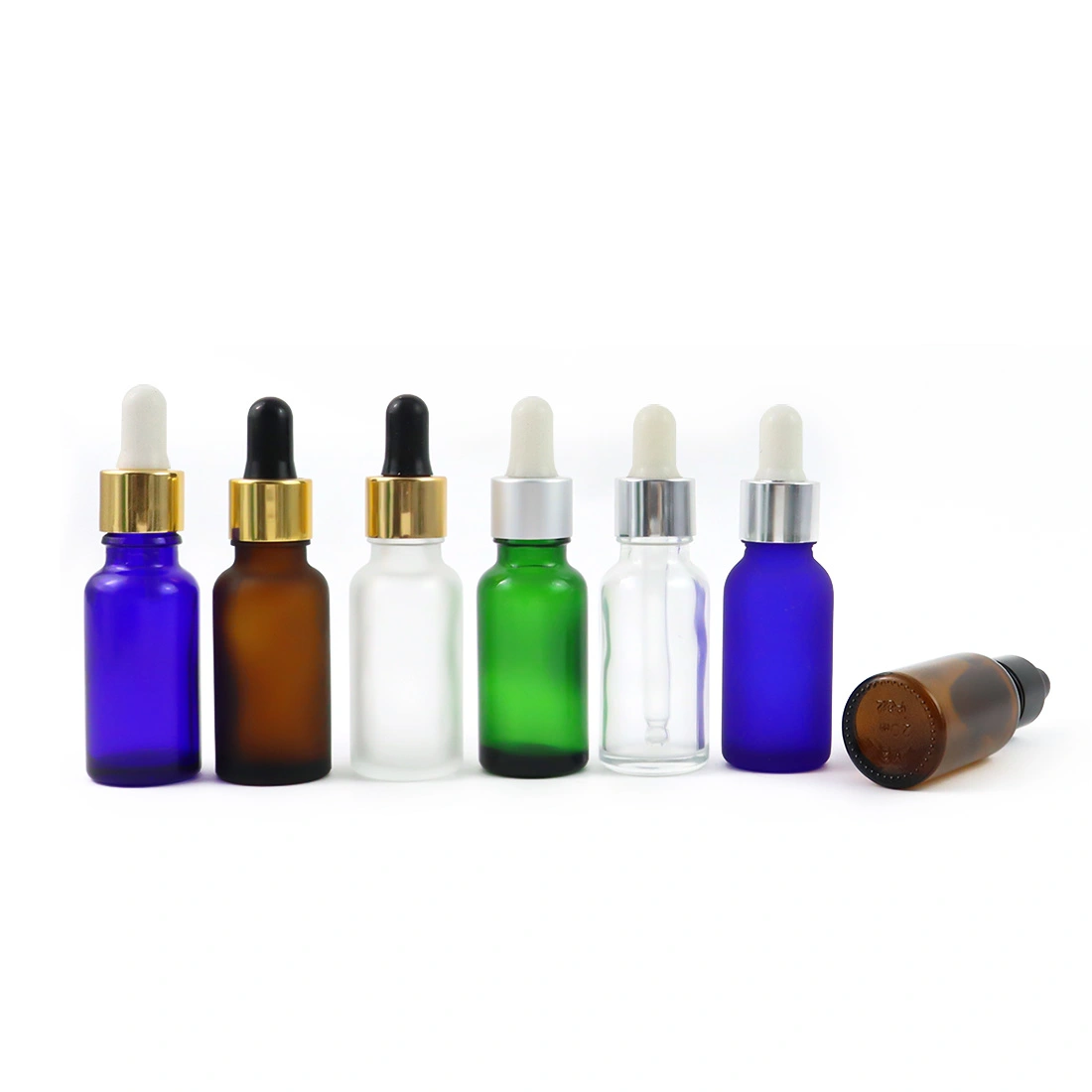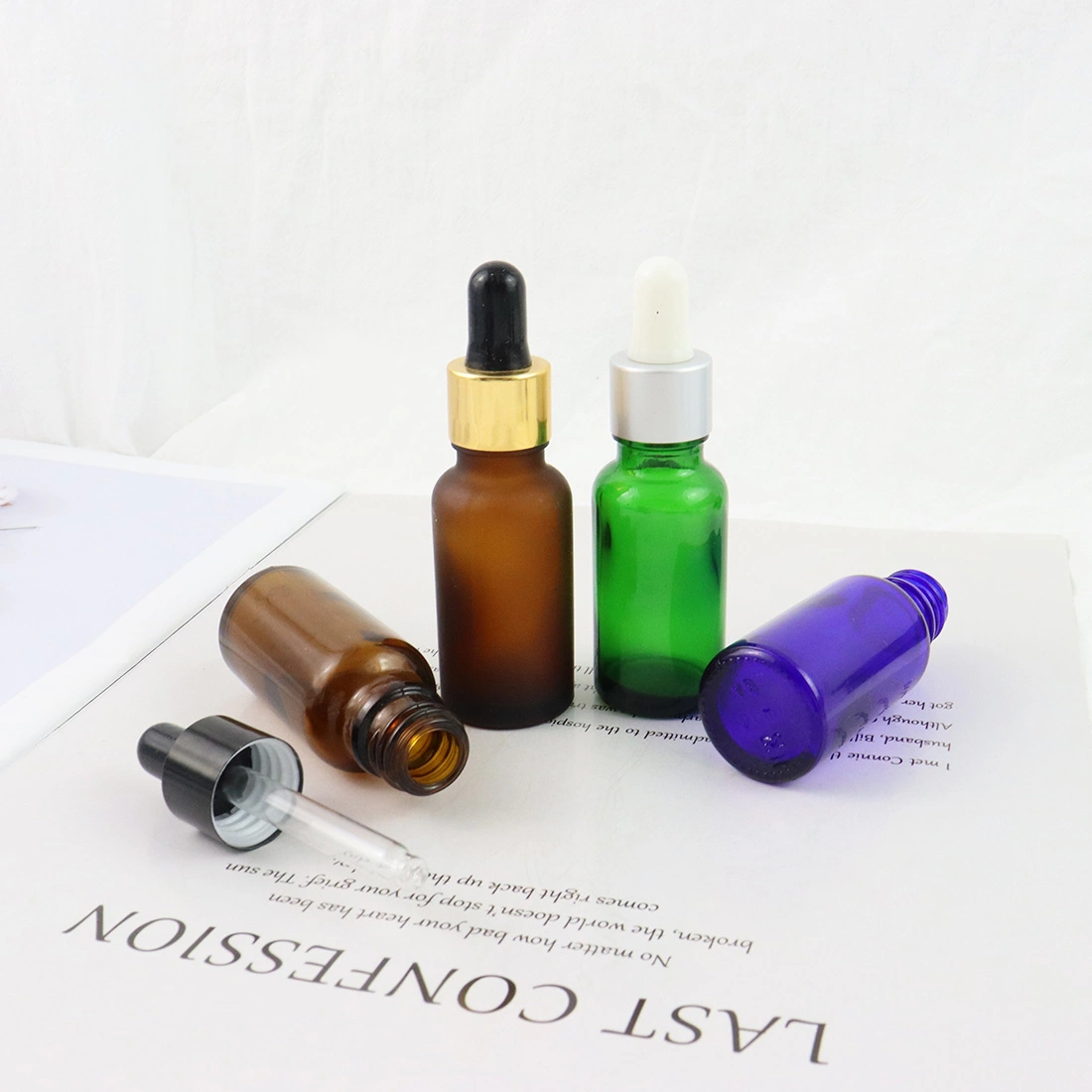 Wholesale Factory Direct Facial Essential Oil Glass Bottle 20mL Green Clear Blue Amber Dropper Bottle Cosmetic Black White Lid