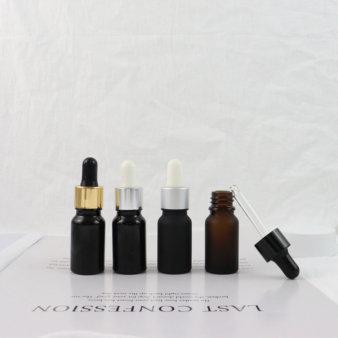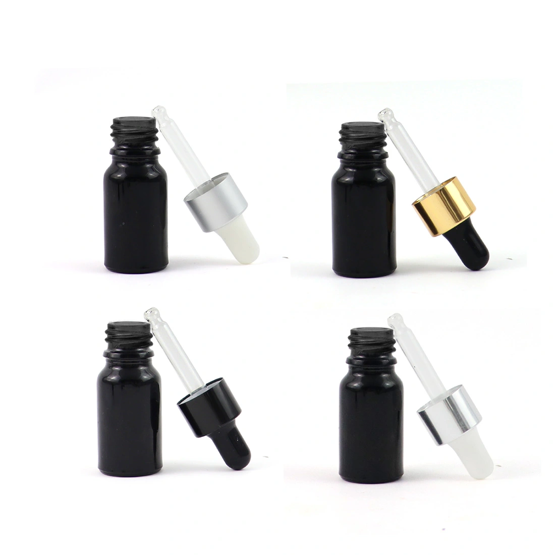 Wholesale Glass pipette Matte Black Glass Dropper 10mL With Aluminum Cap Essential Oil Cosmetic