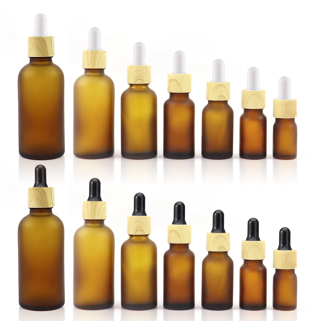 Wholesale Skin Care Essential Oil Serum Bottle Frosted Brown Glass Dropper Bottle With Bamboo Dropper Cap